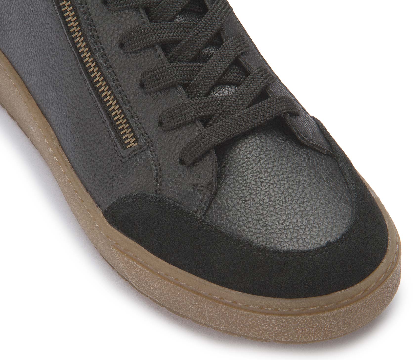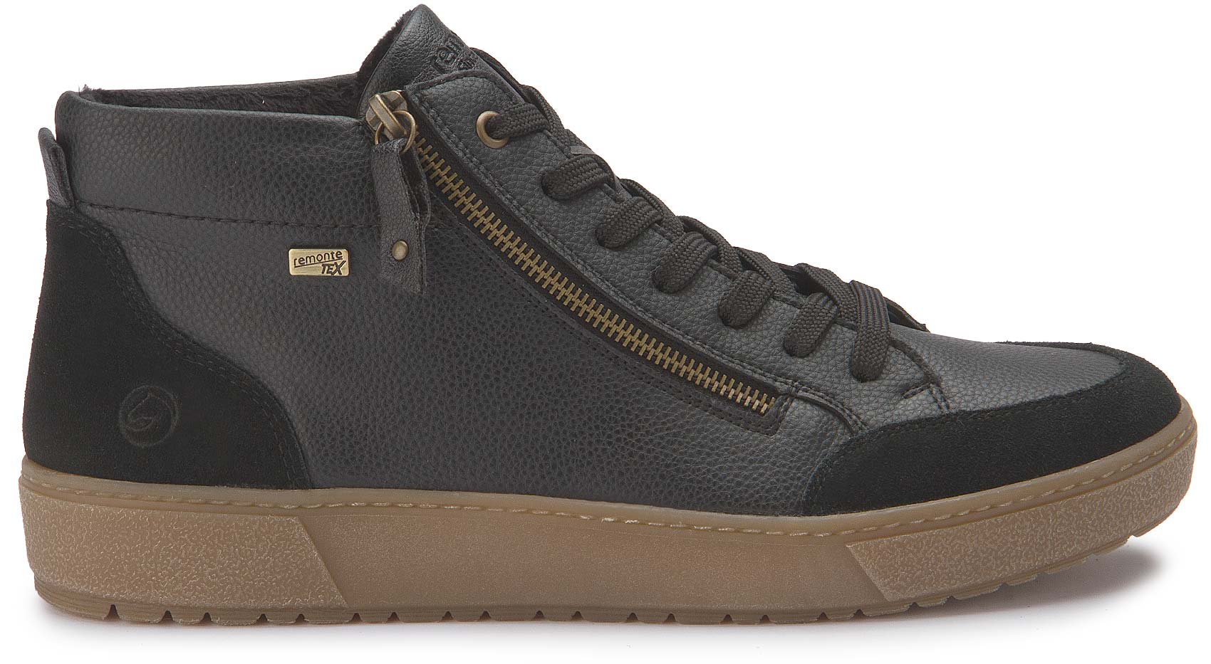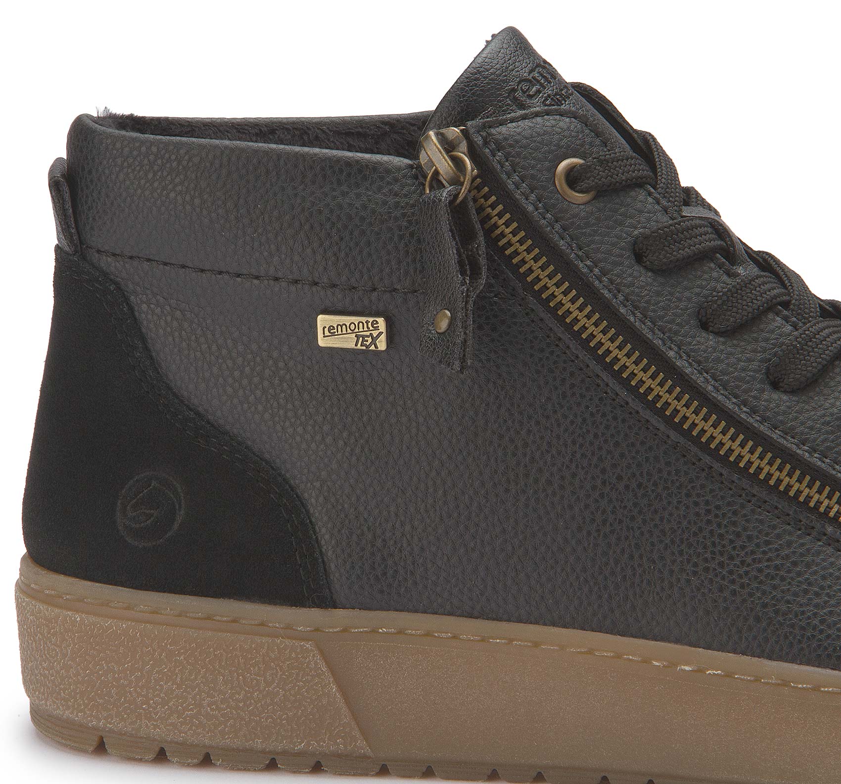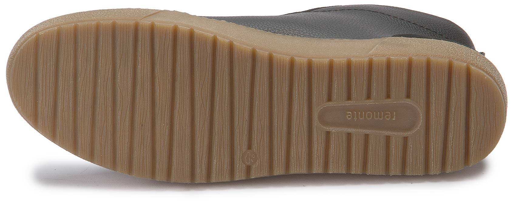Trendbewusst! Diese schwarze remonte Stiefelette aus Glattleder sind ein wahrer Hingucker! Trotz Schnürung kann der Schuh ganz einfach mit einem Reißverschluss geschlossen werden. Eine dämpfende und griffige Sohle und die gepolsterten und herausnehmbaren Einlegesohlen sind weitere Argumente für diesen Schuh. Durch die Komfortweite haben die Füße mehr Platz im Schuh. Das wasserabweisende Obermaterial bietet optimalen Nässeschutz. Bequemer wird’s nicht mehr!