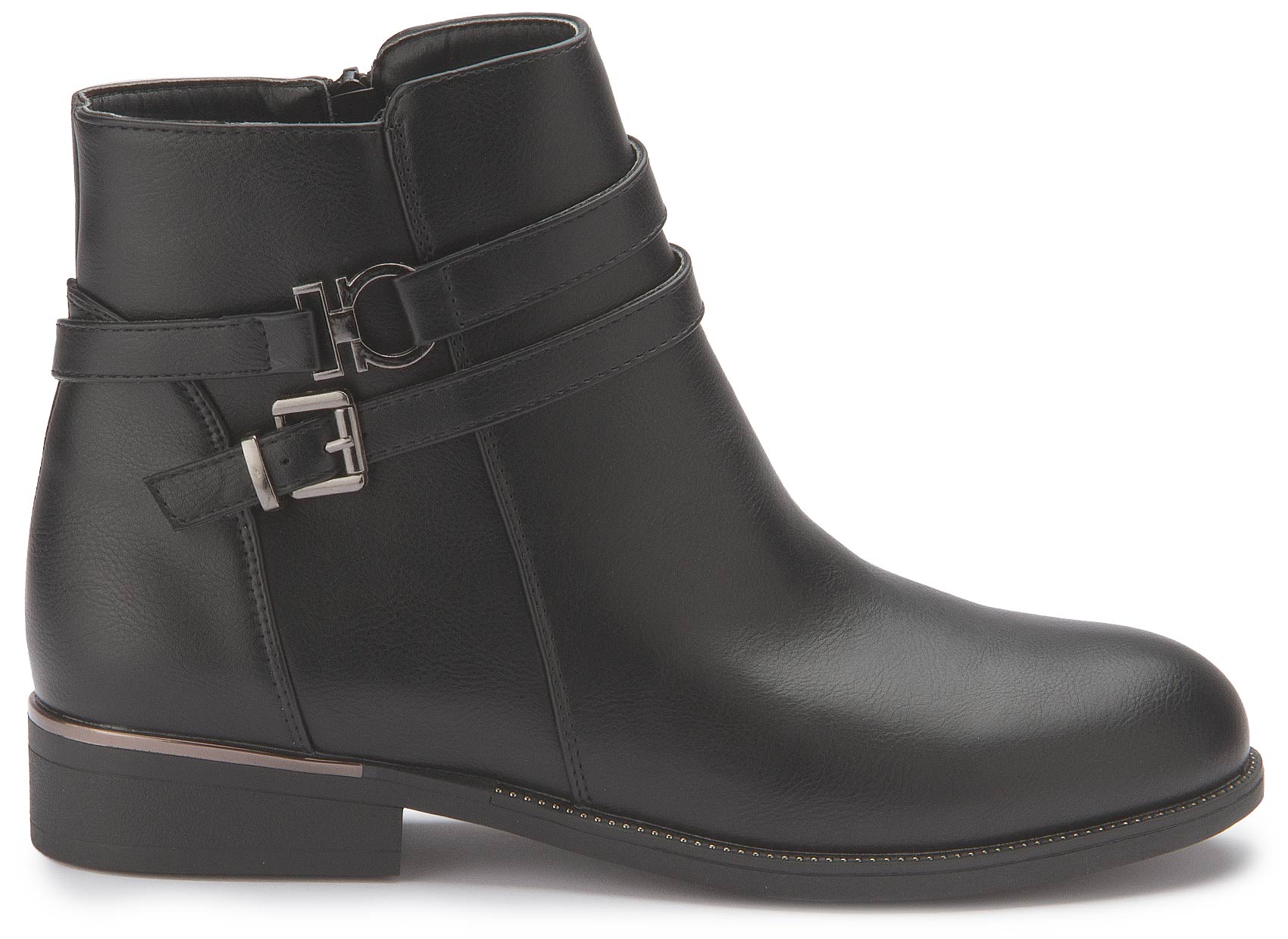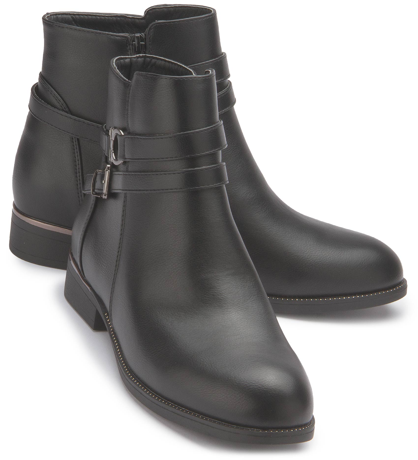 Diese Stiefeletten sind genau perfekt für die kommende Saison. Das formschöne Modell präsentiert sich mit seitlichen Schnallen. Stylen Sie dazu Jeans und einen tollen Wollmantel!