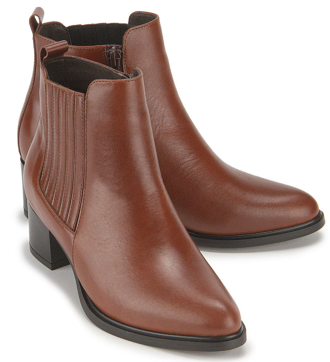 Die Stiefelette mit dem klassischen Schnitt und dem typischen Blockabsatz verzaubert jede Frau im Handumdrehen. Durch die spitz zulaufende Vorderkappe erhält sie zudem ihren markanten Look. Für das Obermaterial wurde Leder gewählt. Der seitlich angebrachte Reißverschluss findet sich harmonisch in das ansprechende Gesamtbild ein und ist für einen leichten Einstieg in den Schuh verantwortlich. Ein schickes Modell für die herbstlichen Tage.