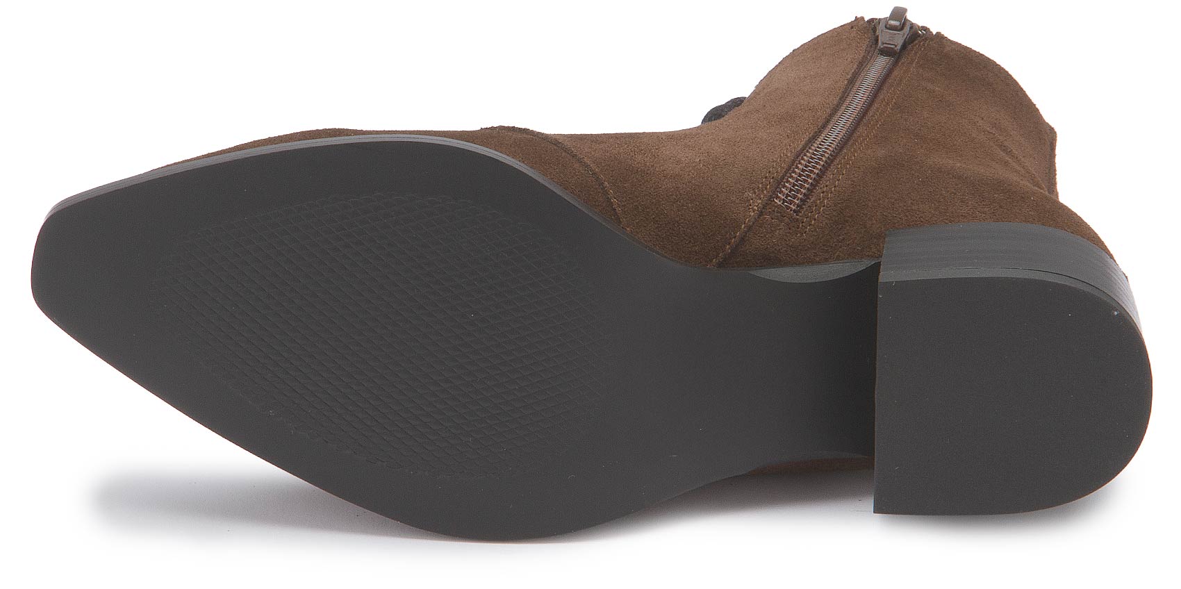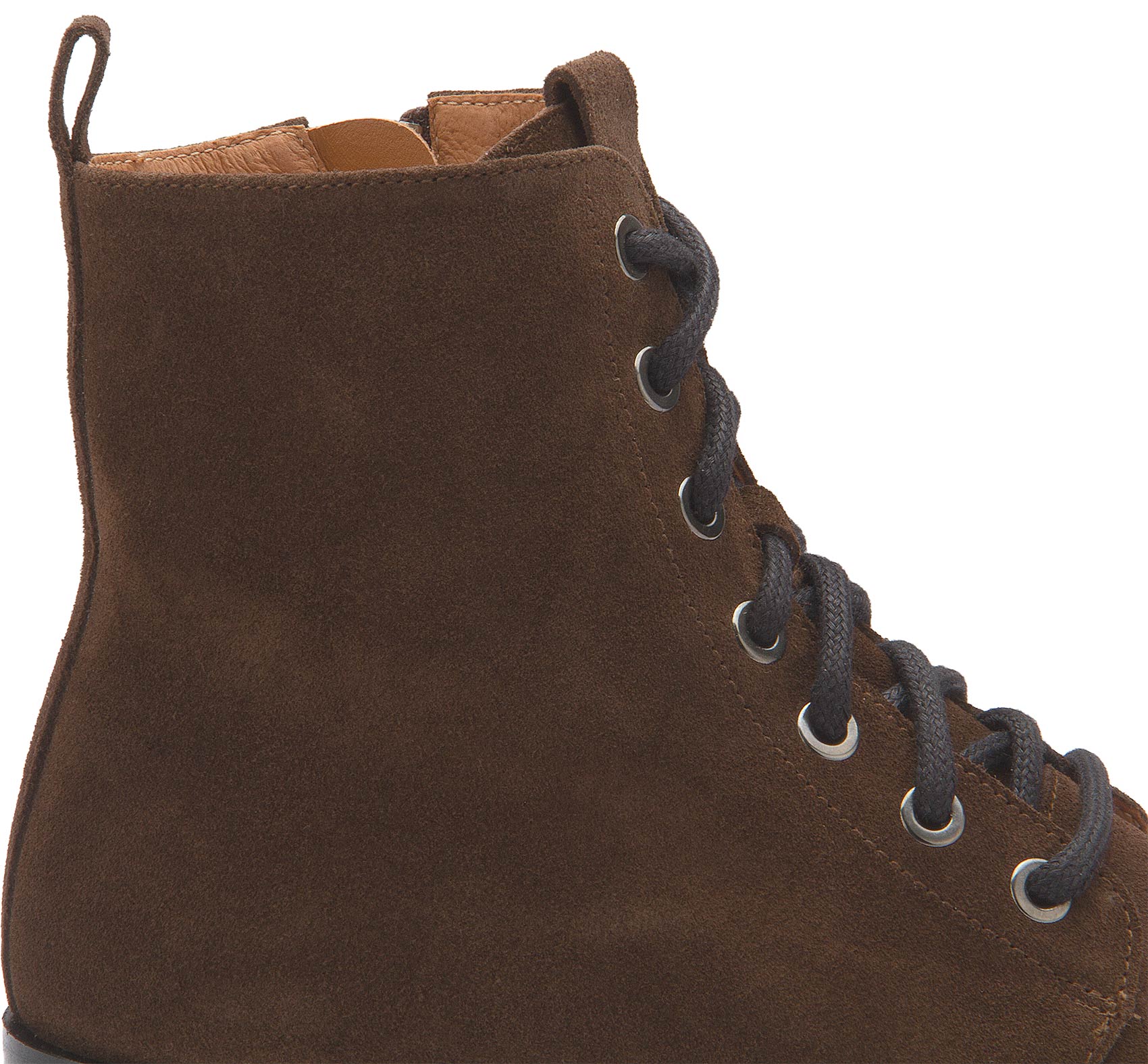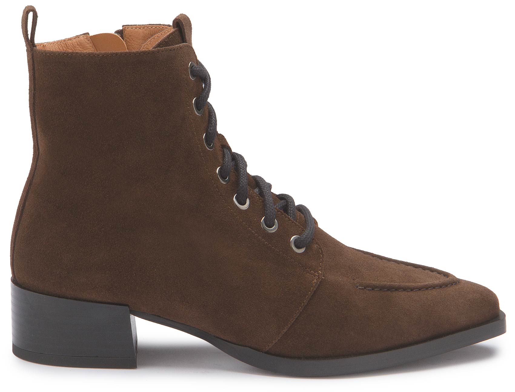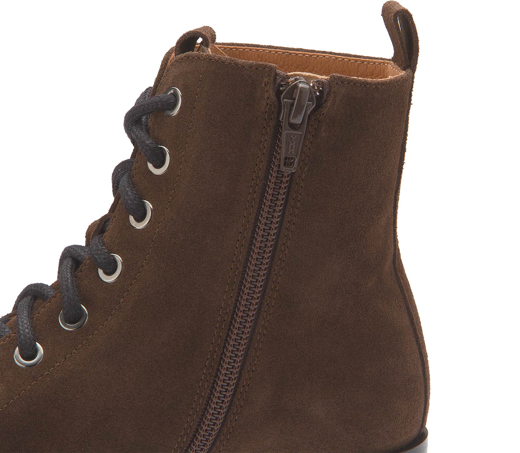 Zeitlos schlicht und stilvoll: Die Bariello Stiefelette aus softem, braunem Rauleder überzeugt mit puristischem Design und einem komfortablen Blockabsatz. Dank der Kombination aus seitlichem Reißverschluss und Schnürung lässt sie sich mühelos an- und ausziehen. Dezente Details runden den vielseitig kombinierbaren Look perfekt ab.
