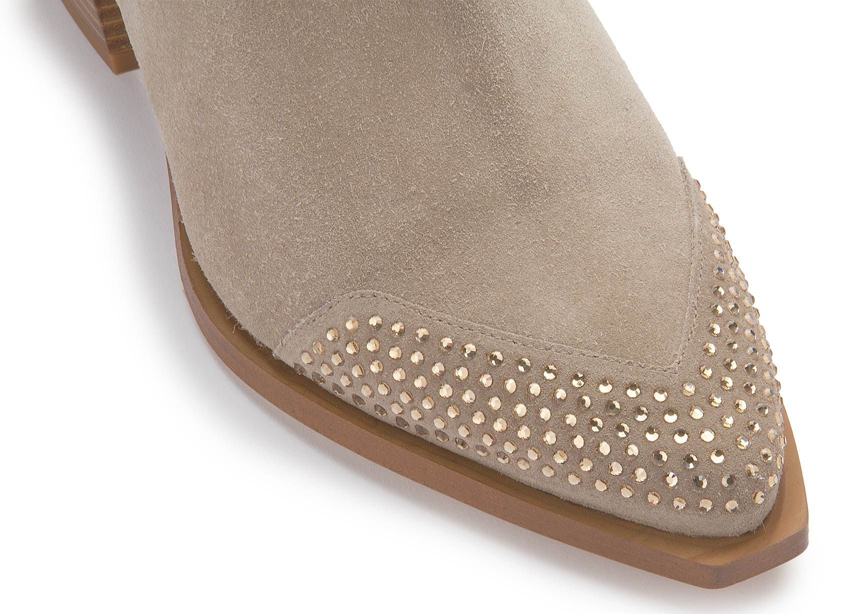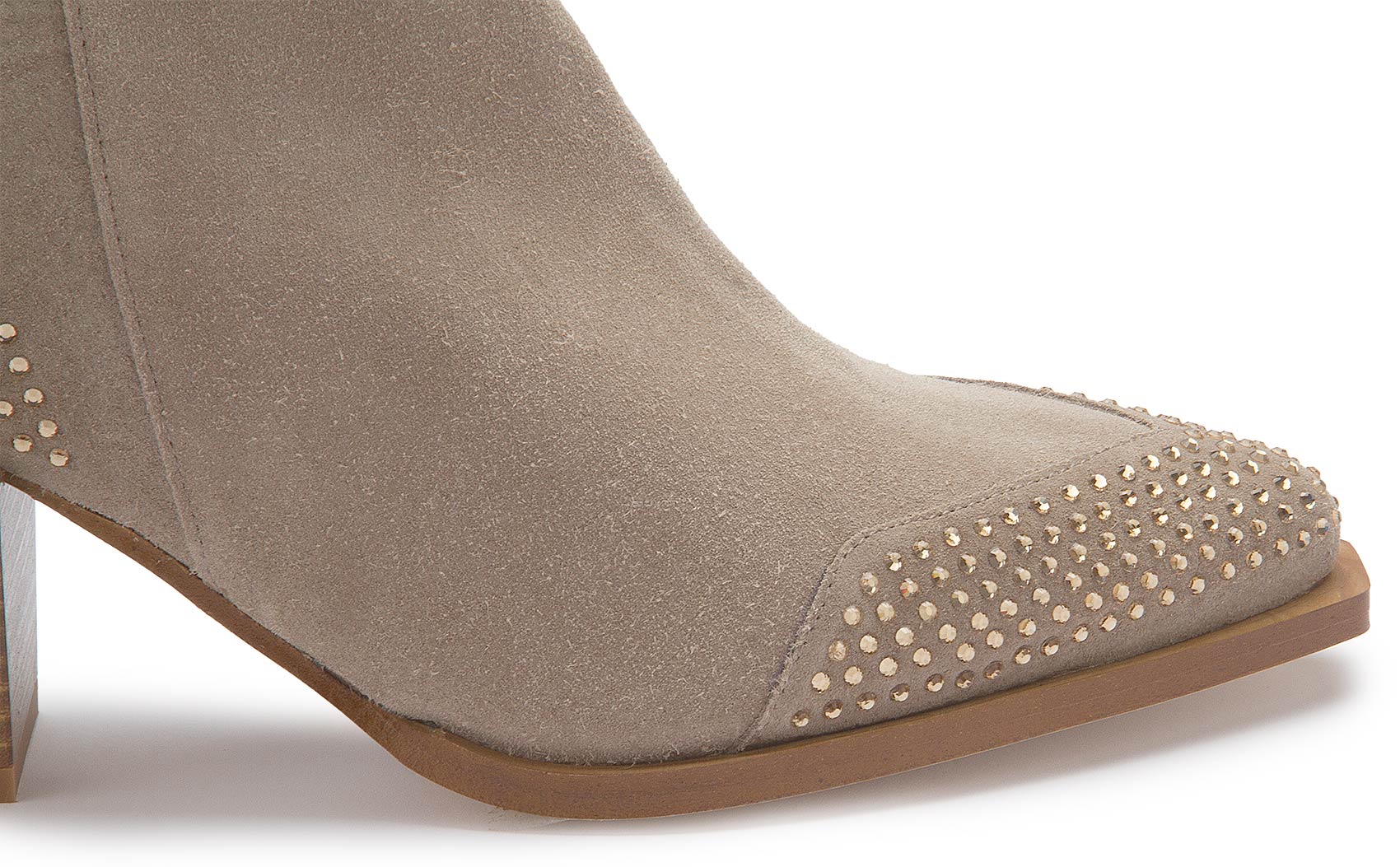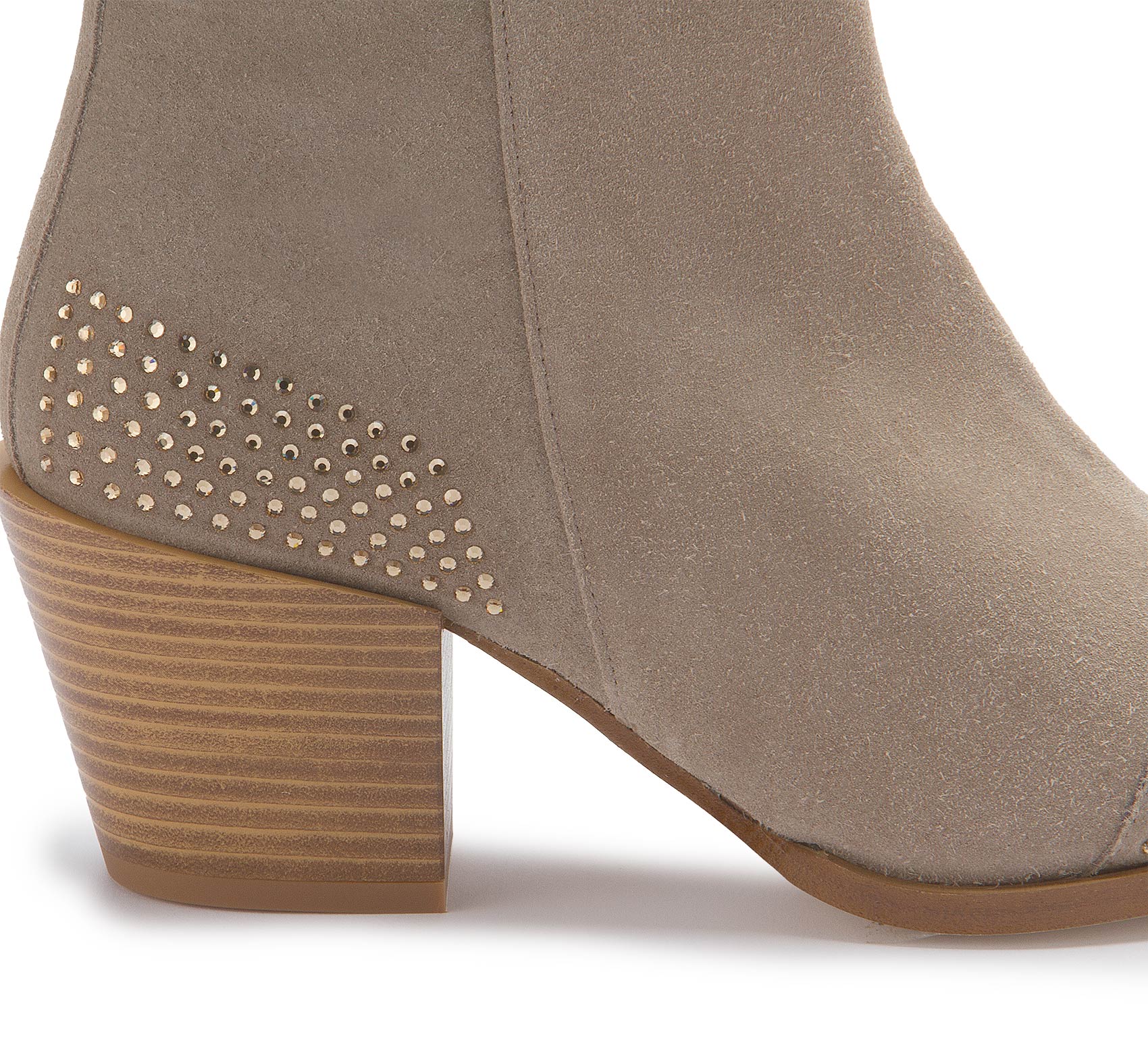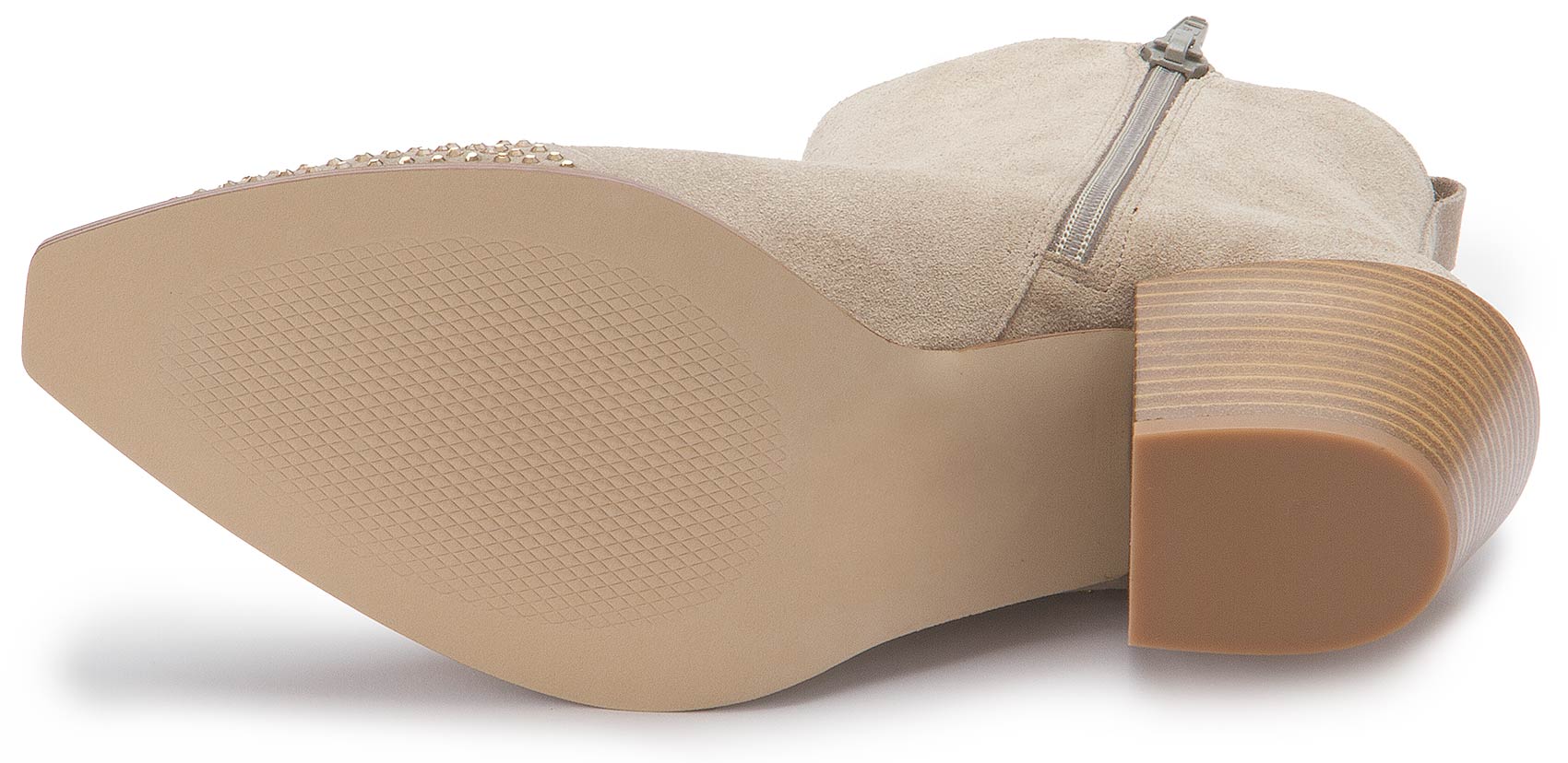 Diese edle Stiefelette von Bariello vereint luxuriöses Design mit hochwertigen Materialien. Gefertigt aus schwarzem Veloursleder und verziert mit funkelnden Steinchen an der Ferse und der Schuhkappe, wird sie zum echten Hingucker. Der stabile Blockabsatz bietet optimalen Komfort, während das Innenfutter aus Leder ein angenehmes Tragegefühl garantiert. Ein seitlicher Reißverschluss rundet das elegante Gesamtbild ab und sorgt für bequemes An- und Ausziehen.