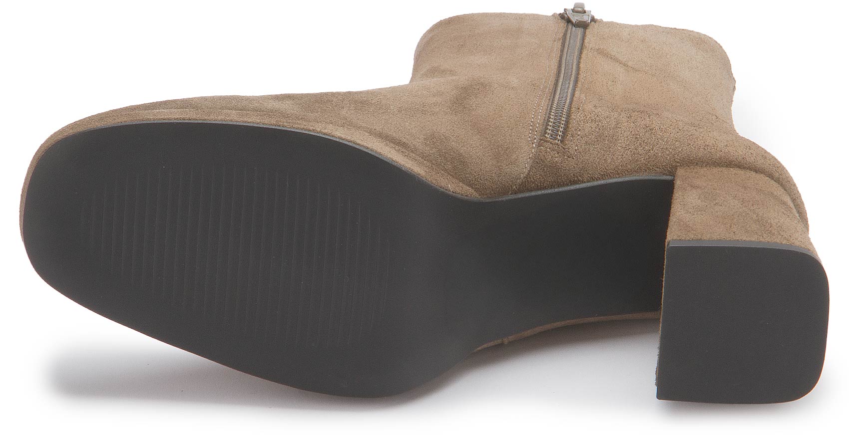 Diese modischen Stiefeletten von Bariello sind die perfekten Alltagsbegleiter und lassen sich dank Reißverschluss mühelos an- und ausziehen. Hergestellt aus hochwertigem Rauleder, garantieren sie ein äußerst angenehmes Tragegefühl bei jedem Schritt. Das Design besticht durch seine stilvolle Eleganz, während der bequeme Absatz nicht nur für Komfort sorgt, sondern auch einen femininen Gang unterstreicht.