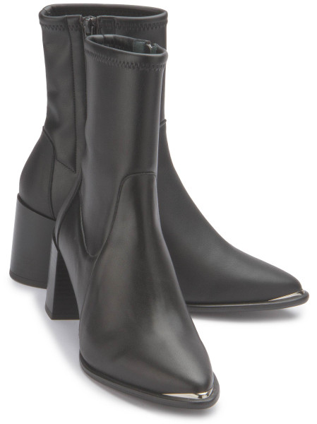 Diese Bariello Stiefelette aus hochwertigem Nappaleder in klassischem Schwarz kombiniert elegantes Design mit höchstem Tragekomfort. Das weiche Lederinnenfutter sorgt für ein angenehmes Tragegefühl, während der Blockabsatz Stabilität und eine feminine Silhouette verleiht. Ein seitlicher Reißverschluss ermöglicht ein unkompliziertes An- und Ausziehen. Ein vielseitiger Begleiter, der sich perfekt für stilvolle Auftritte eignet.