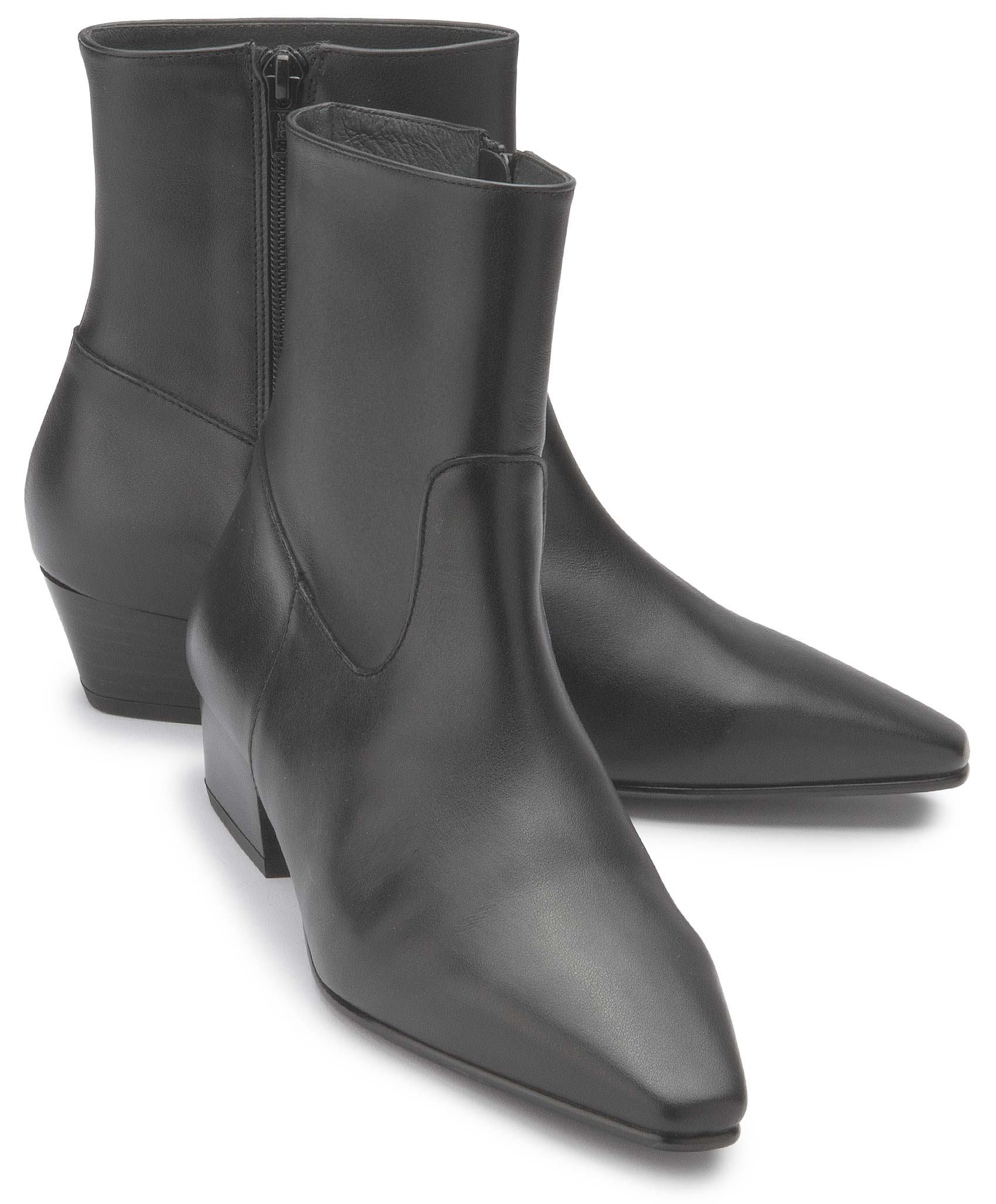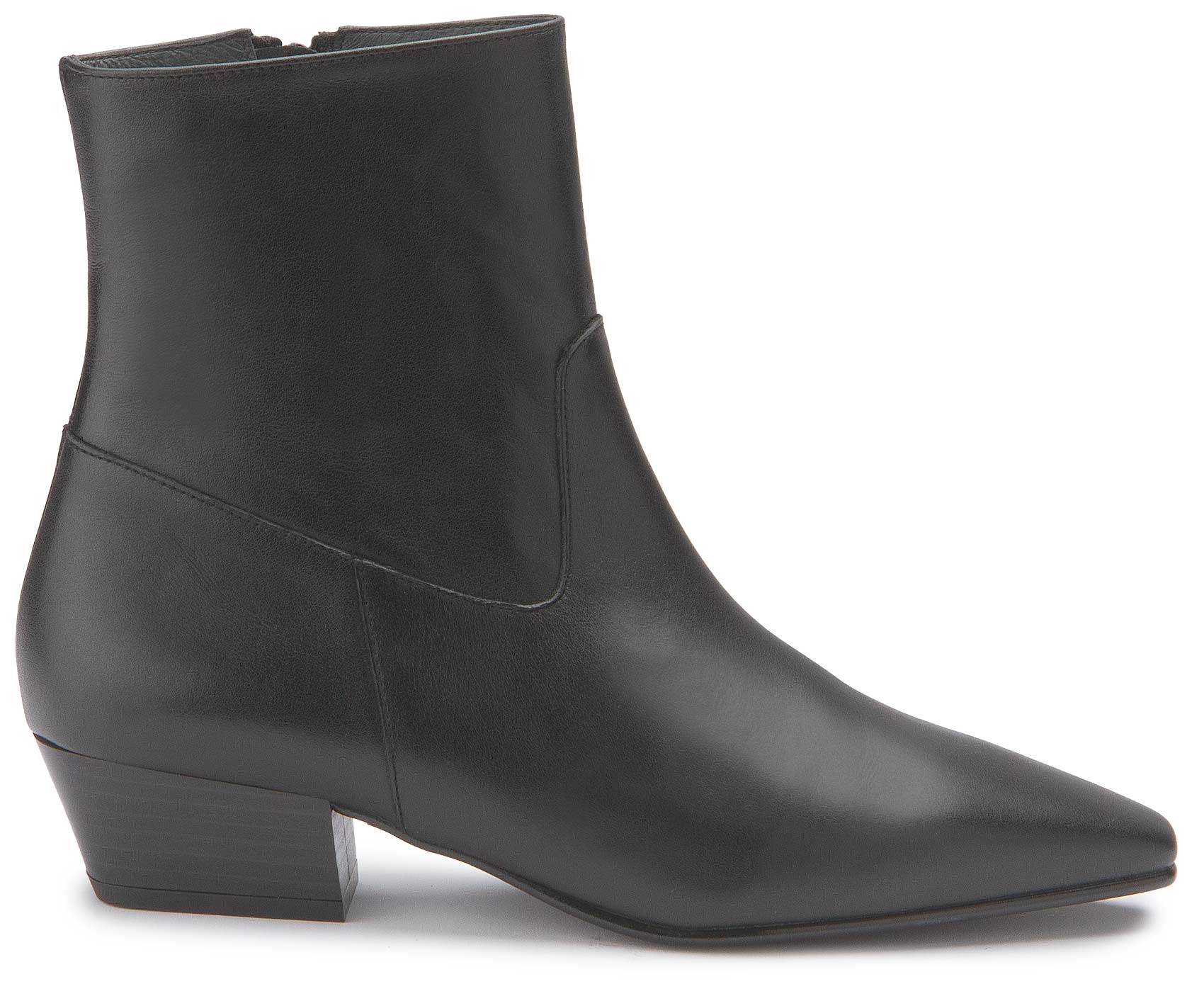 Schlicht, stilvoll und vielseitig kombinierbar – diese Bariello Stiefelette aus weichem schwarzem Glattleder überzeugt durch seine klare Form und den komfortablen Blockabsatz. Der seitliche Reißverschluss sorgt für bequemes Anziehen und rundet das zeitlose Design dezent ab.