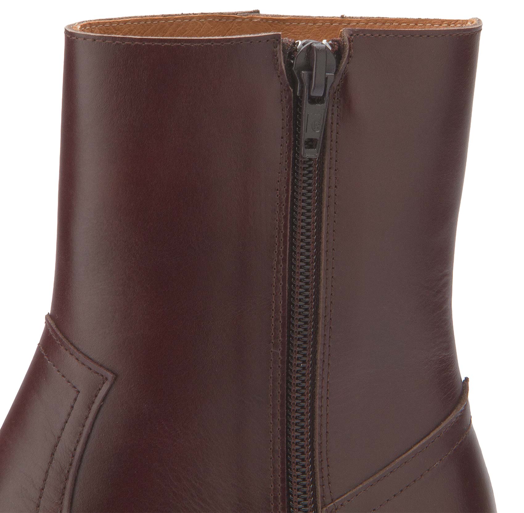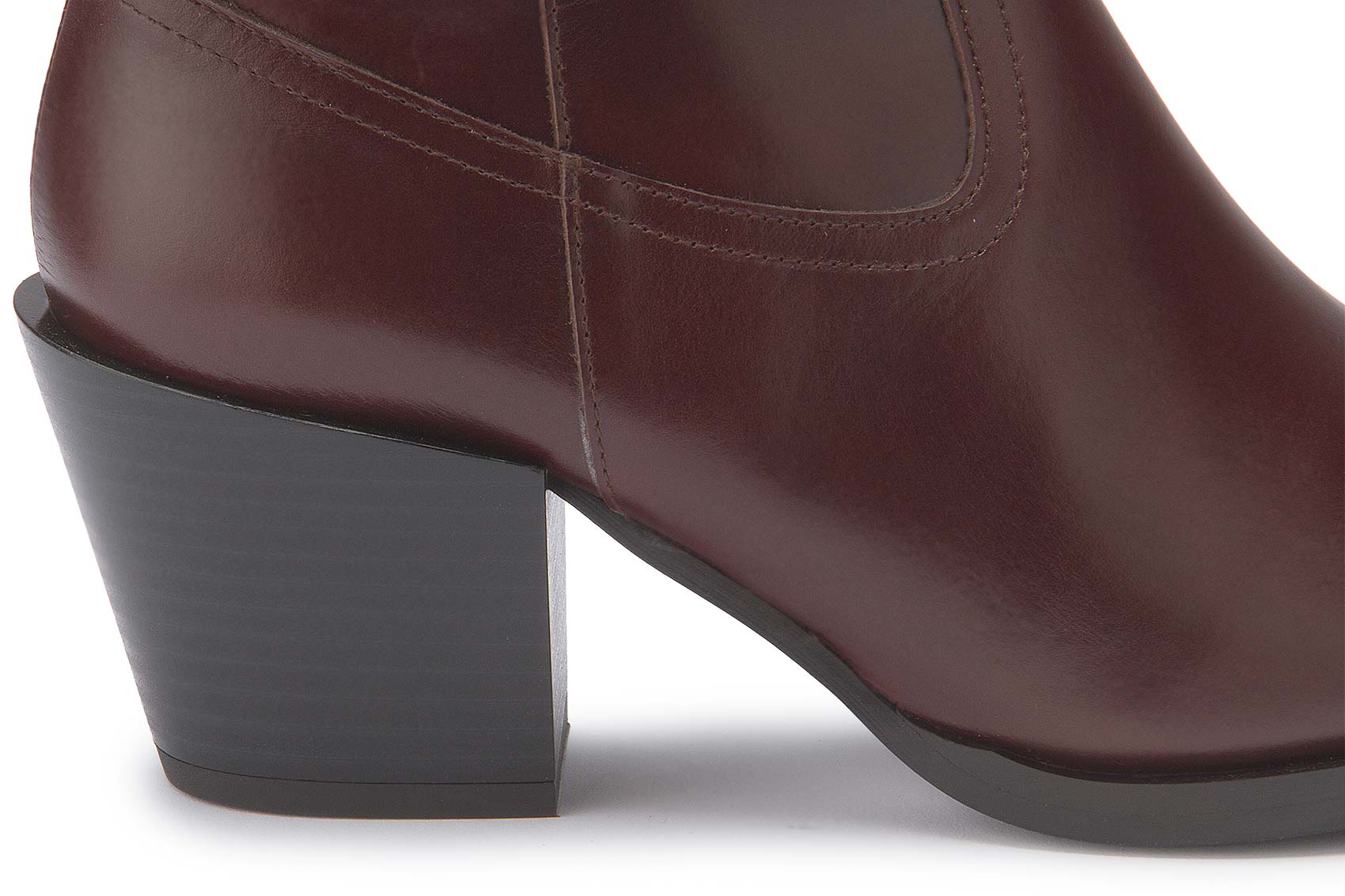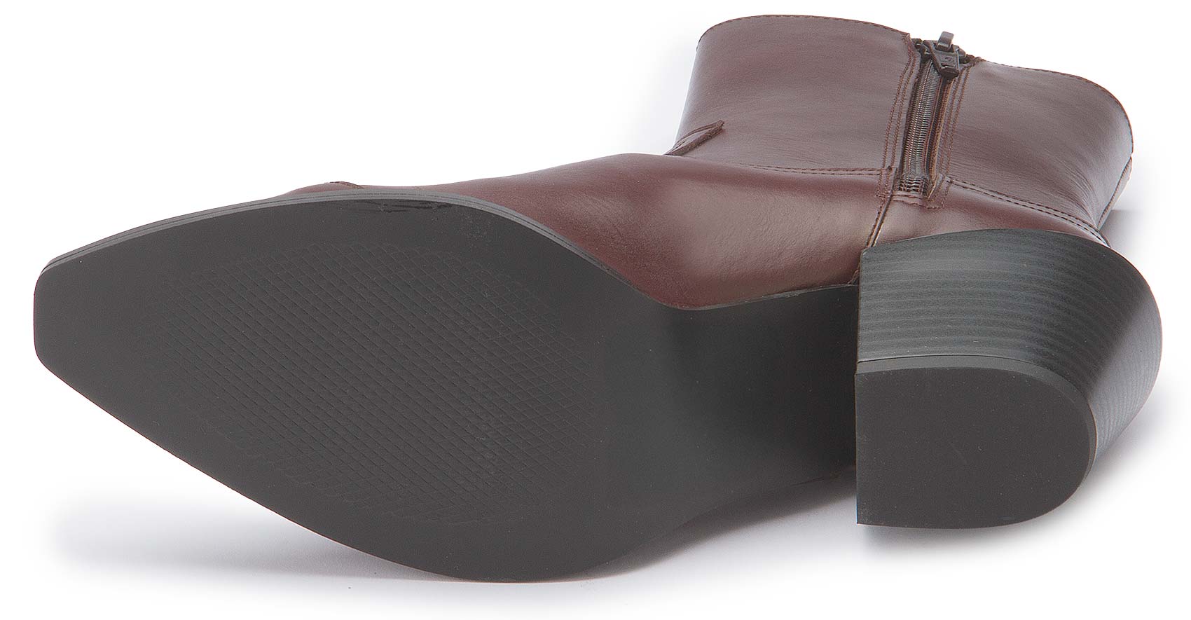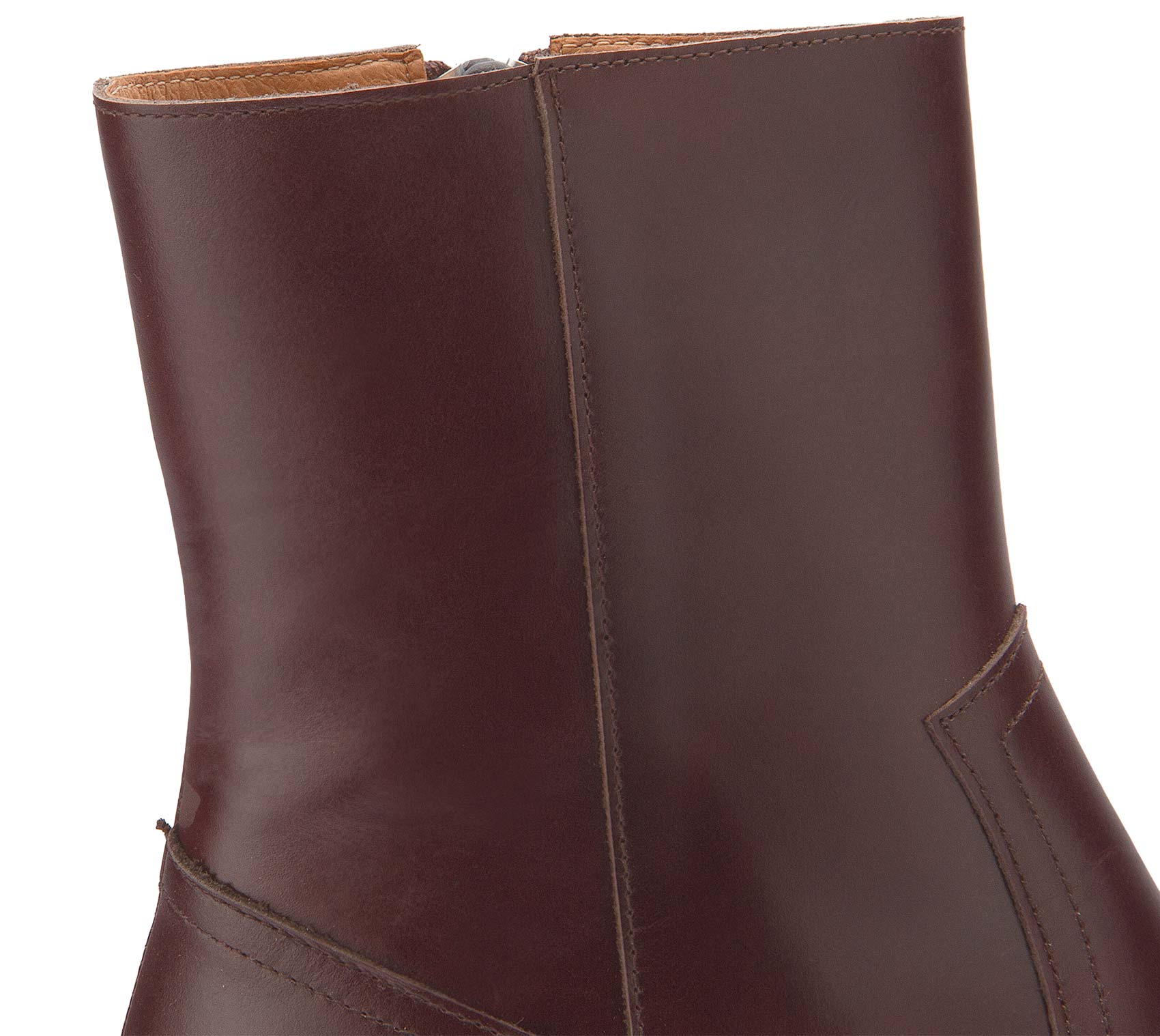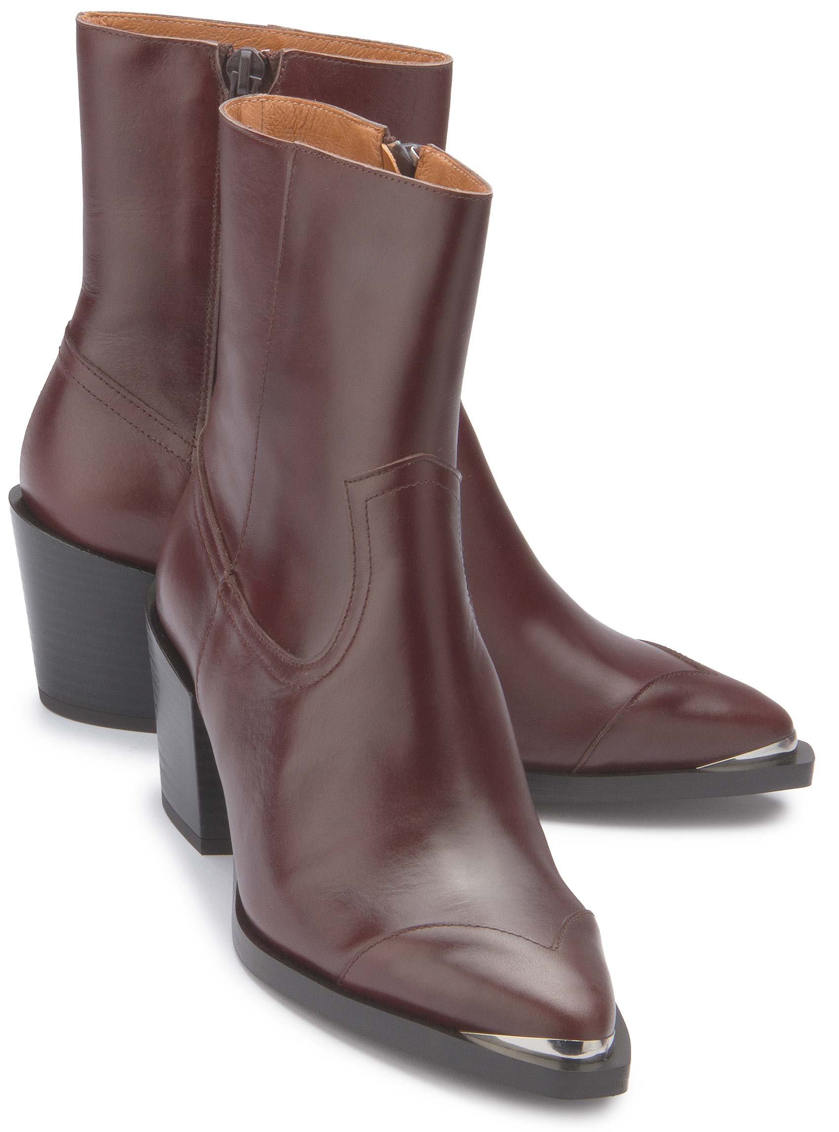 Dieser Stiefel von Bariello überzeugt mit puristischer Eleganz und raffiniertem Detail: Glänzendes, braunfarbenes Glattleder trifft auf eine markant geformte Spitze mit Metallapplikation. Der bequeme Blockabsatz und der seitliche Reißverschluss machen ihn zum idealen Begleiter für stilvolle Auftritte mit urbanem Charakter.