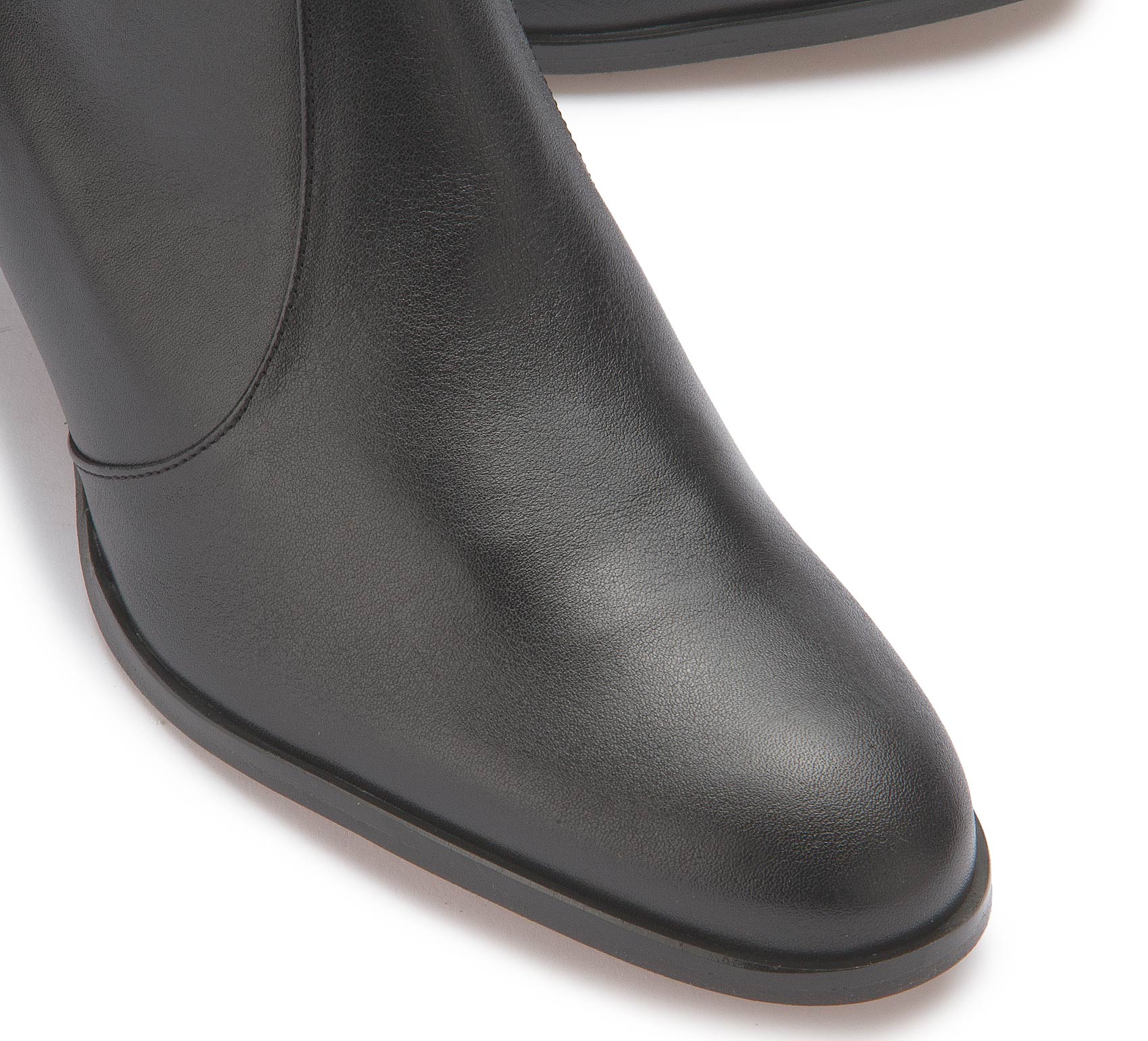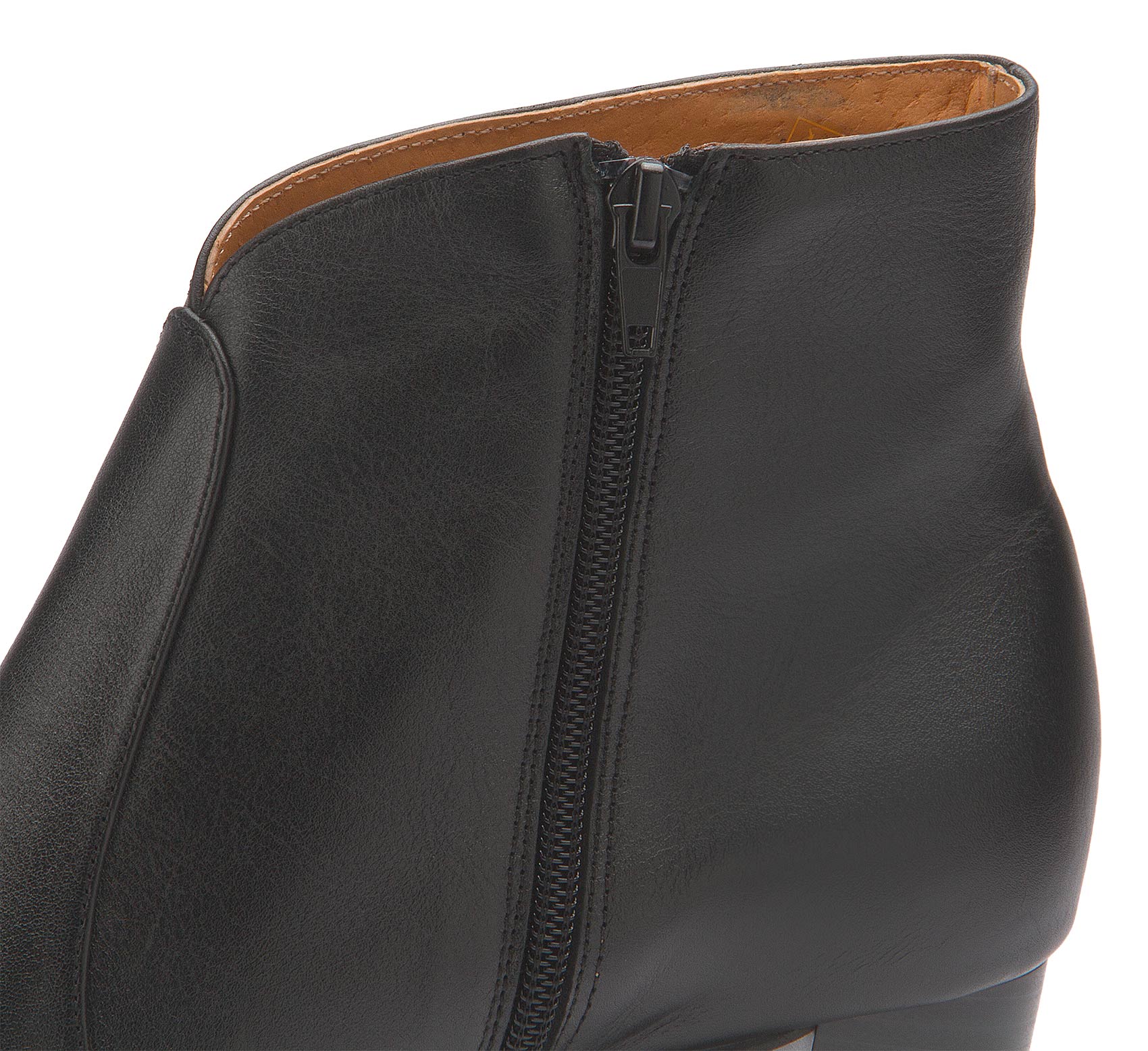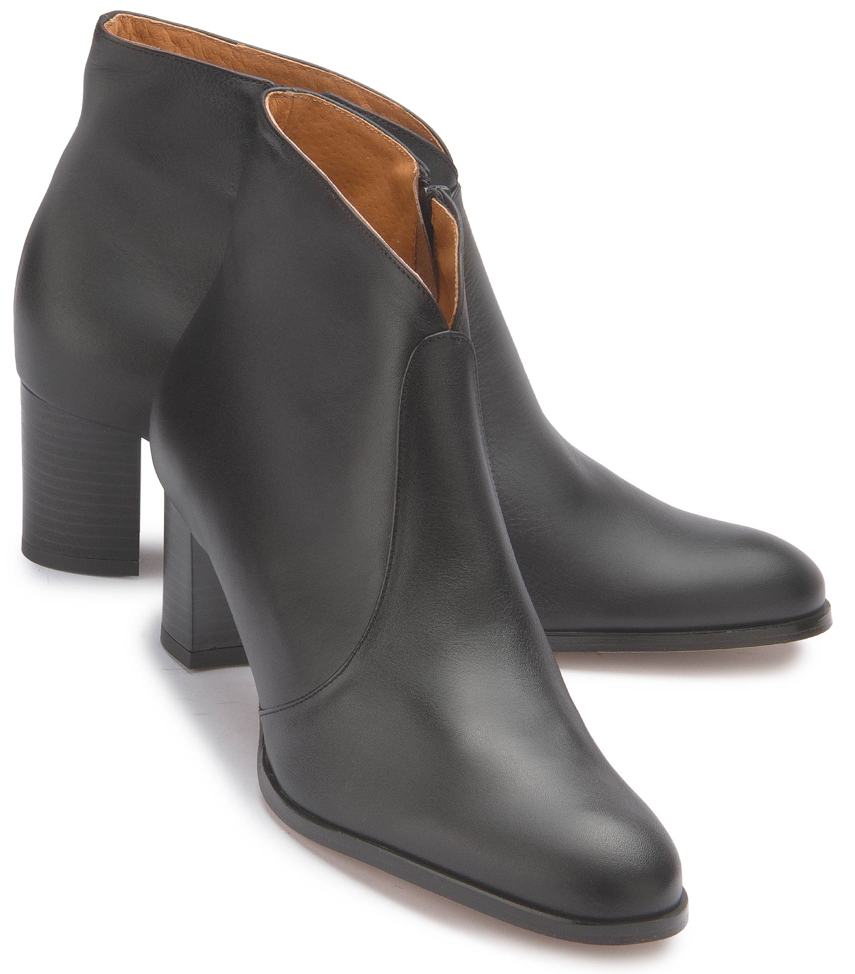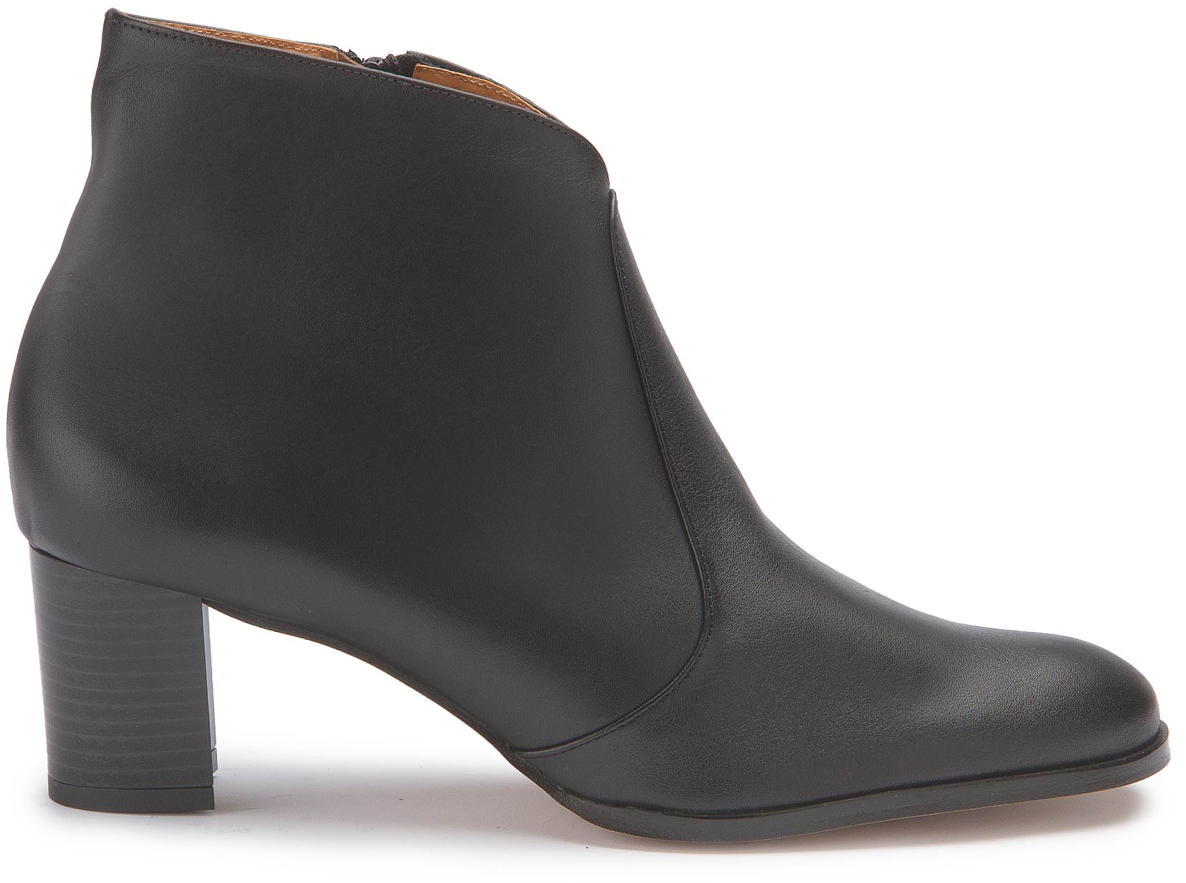 Diese edlen Stiefeletten in schwarzem Leder kombinieren zeitlose Eleganz mit modernem Chic. Der stabile Blockabsatz sorgt für eine feminine Silhouette und zugleich hohen Tragekomfort. Ein stilvoller Begleiter für Büro, Alltag und besondere Anlässe – perfekt, um herbstliche Outfits modisch abzurunden.