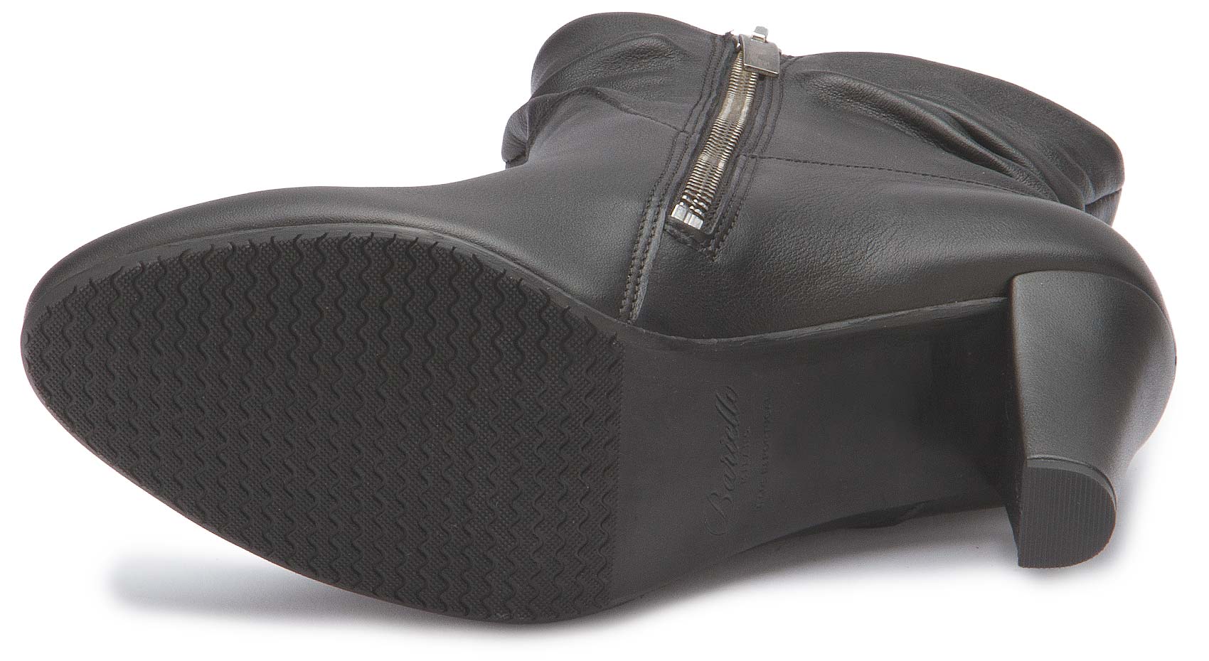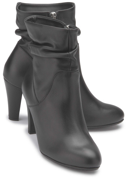 Dieser elegante Stiefelette von Bariello aus schwarzem Glattleder überzeugt mit femininer Raffinesse und einem stilvoll gerafften Schaft. Der praktische Reißverschluss an der Innenseite sorgt für ein bequemes An- und Ausziehen, während der hohe Absatz eine elegante Silhouette zaubert.