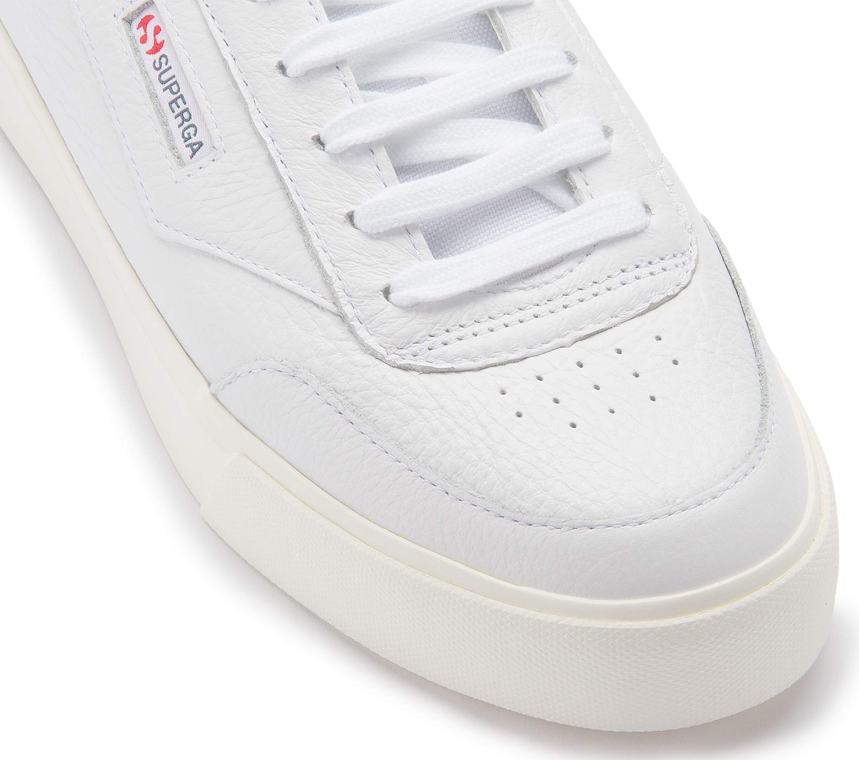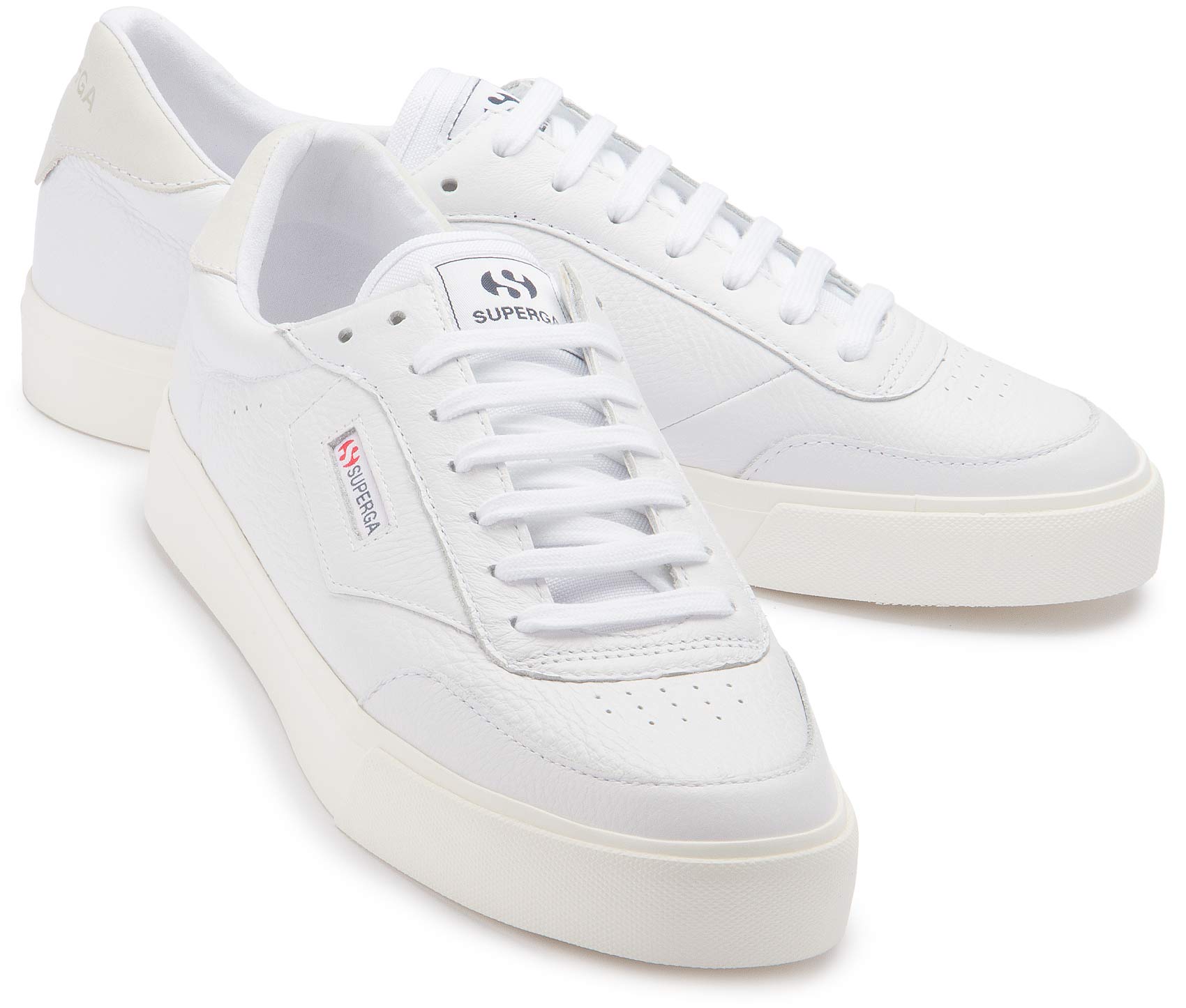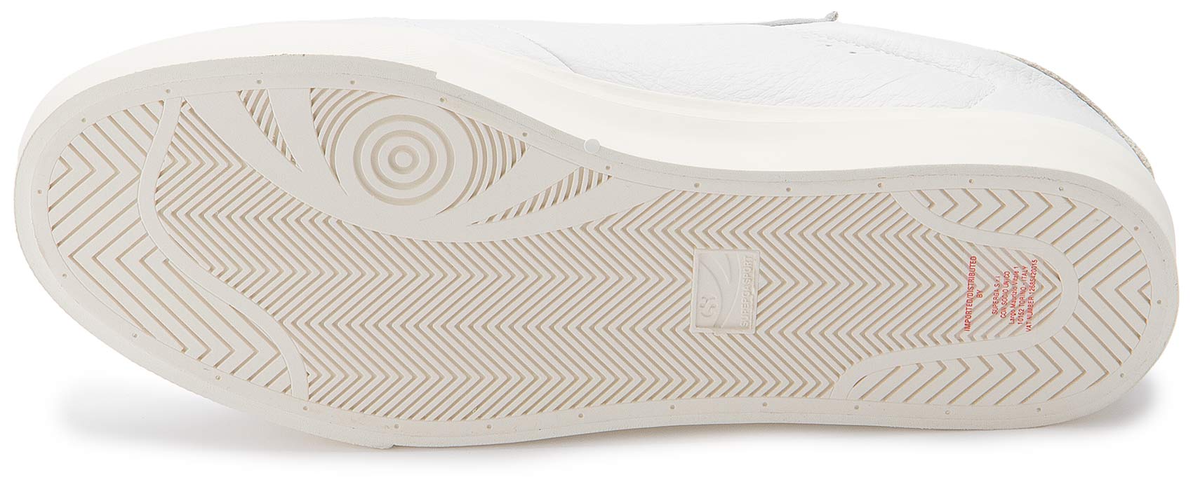 Dieser Superga Sneaker überzeugt auf ganzer Linie. Dieses Modell zeigt sich im coolen Retro Style, das weiße Glattleder ist butterweich und schmiegt sich dem Fuß perfekt an. Der leicht gepolsterte Schaftkragen sorgt zusätzlich für Bequemlichkeit.