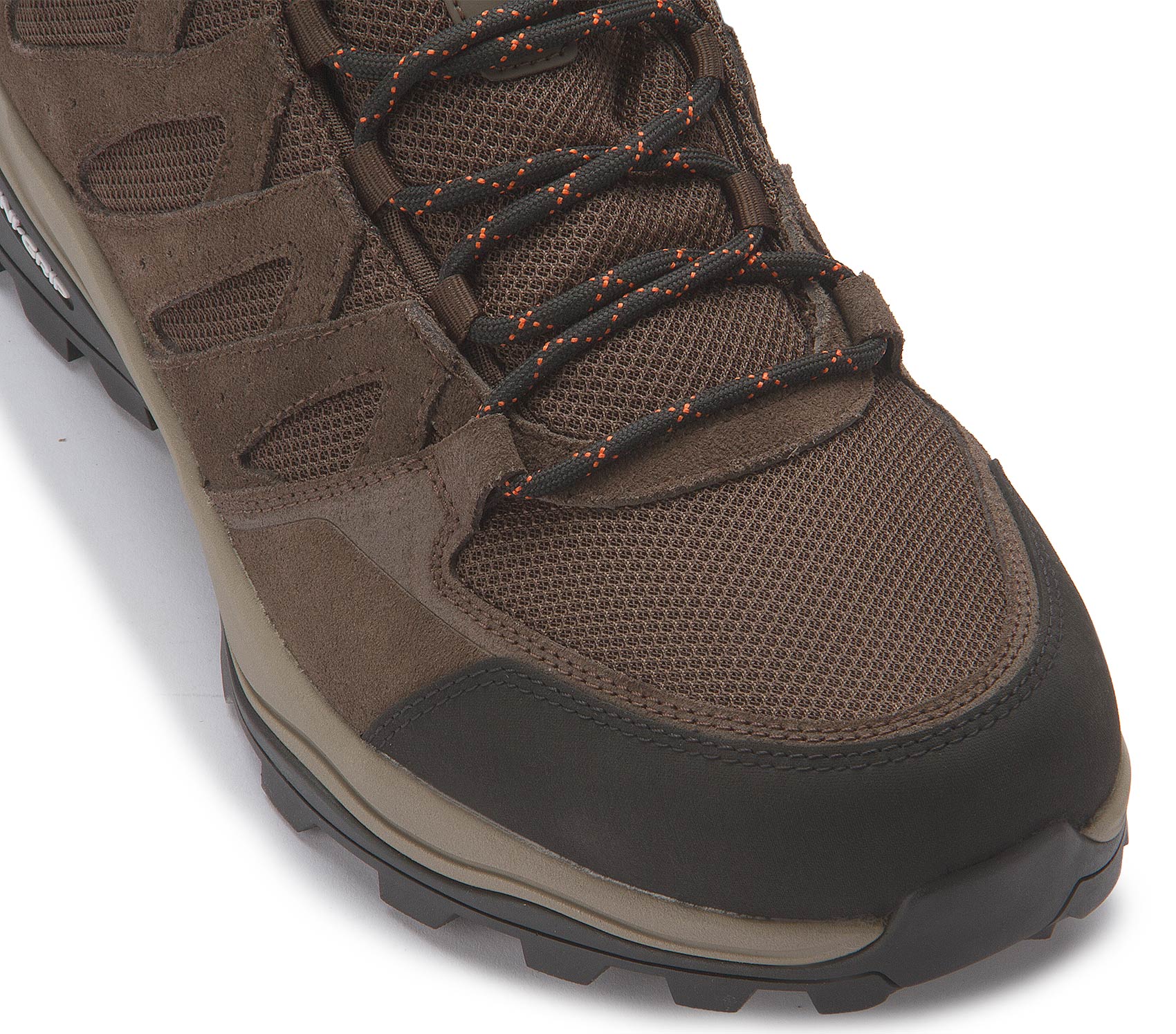 Klassisches Design trifft auf moderne Konstruktion: Diese Mid-Wanderschuhe mit wasserdichtem Aufbau und atmungsaktivem Mesh sind ideal für regnerische Touren. Die Gummizehenkappe und robuste Metall-Hardware sorgen für Strapazierfähigkeit auf felsigem, unebenem Gelände. Die leichte Zwischensohle bietet ganztägigen Tragekomfort, angenehme Dämpfung und ein reaktionsfreudiges Laufgefühl. Die griffige Außensohle bietet hervorragende Traktion und besteht zu 50 % aus biobasiertem Gummi – für einen reduzierten ökologischen Fußabdruck.