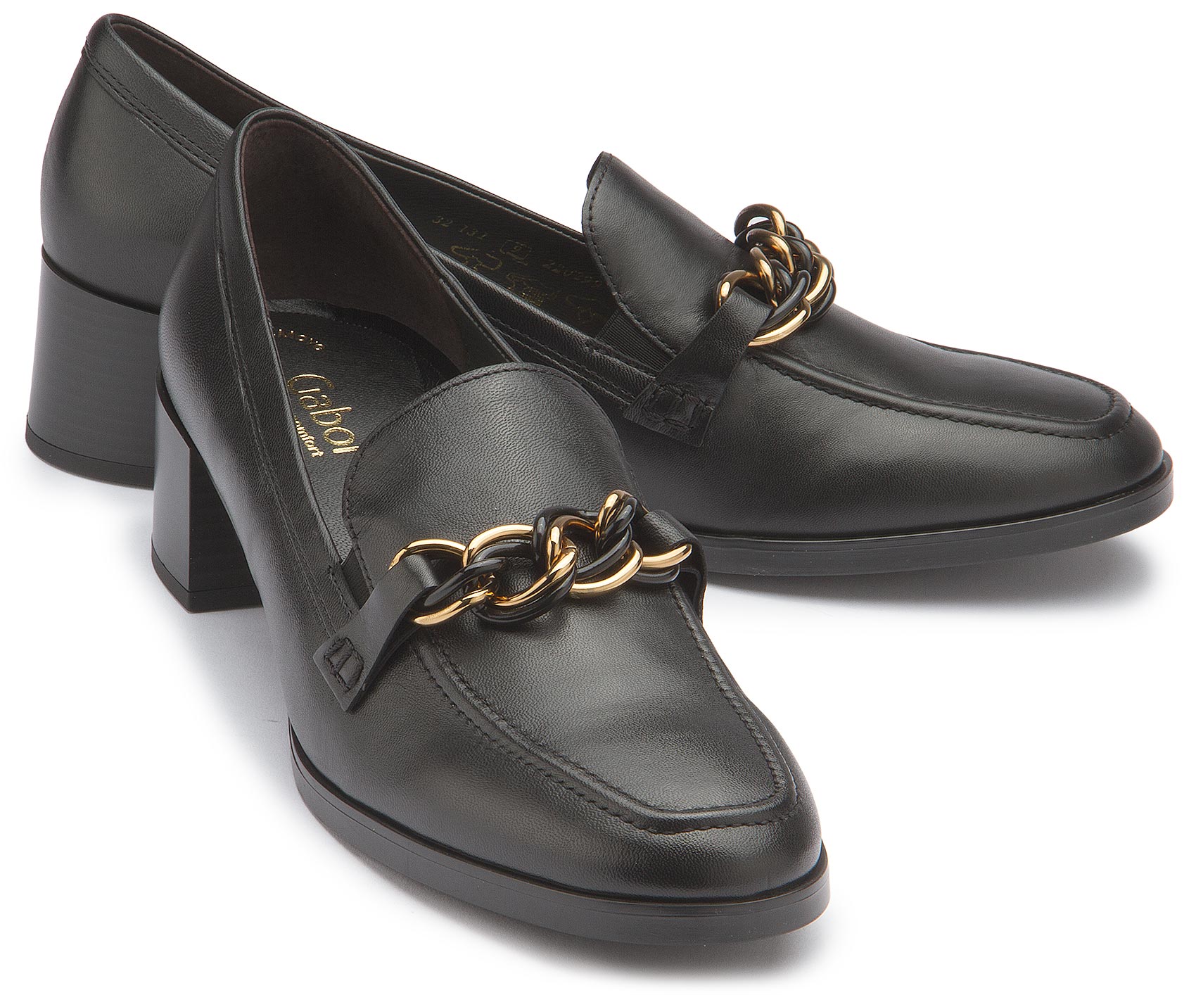 Der Gabor Trotteur vereint klassische Eleganz und höchsten Tragekomfort. Gefertigt aus edlem Leder und verziert mit einer zarten Kette, zieht er alle Blicke auf sich - egal zu welchem Anlass. Der praktische Gummieinsatz ermöglicht ein müheloses An- und Ausziehen, während das zeitlose Schwarz perfekt zu jedem Outfit passt. Ein unverzichtbares Basic, das Ihrem Stil eine Extraportion Glamour verleiht.