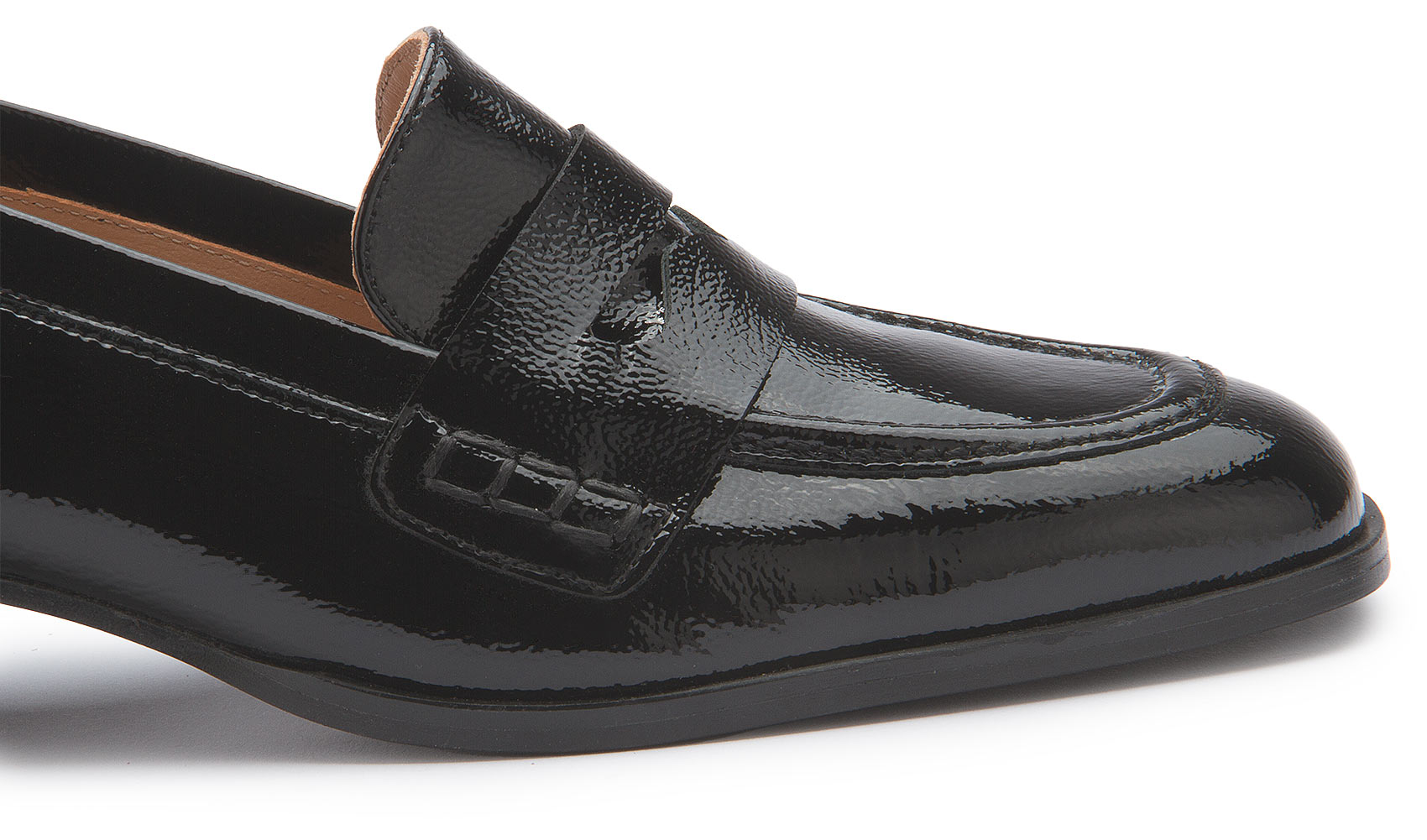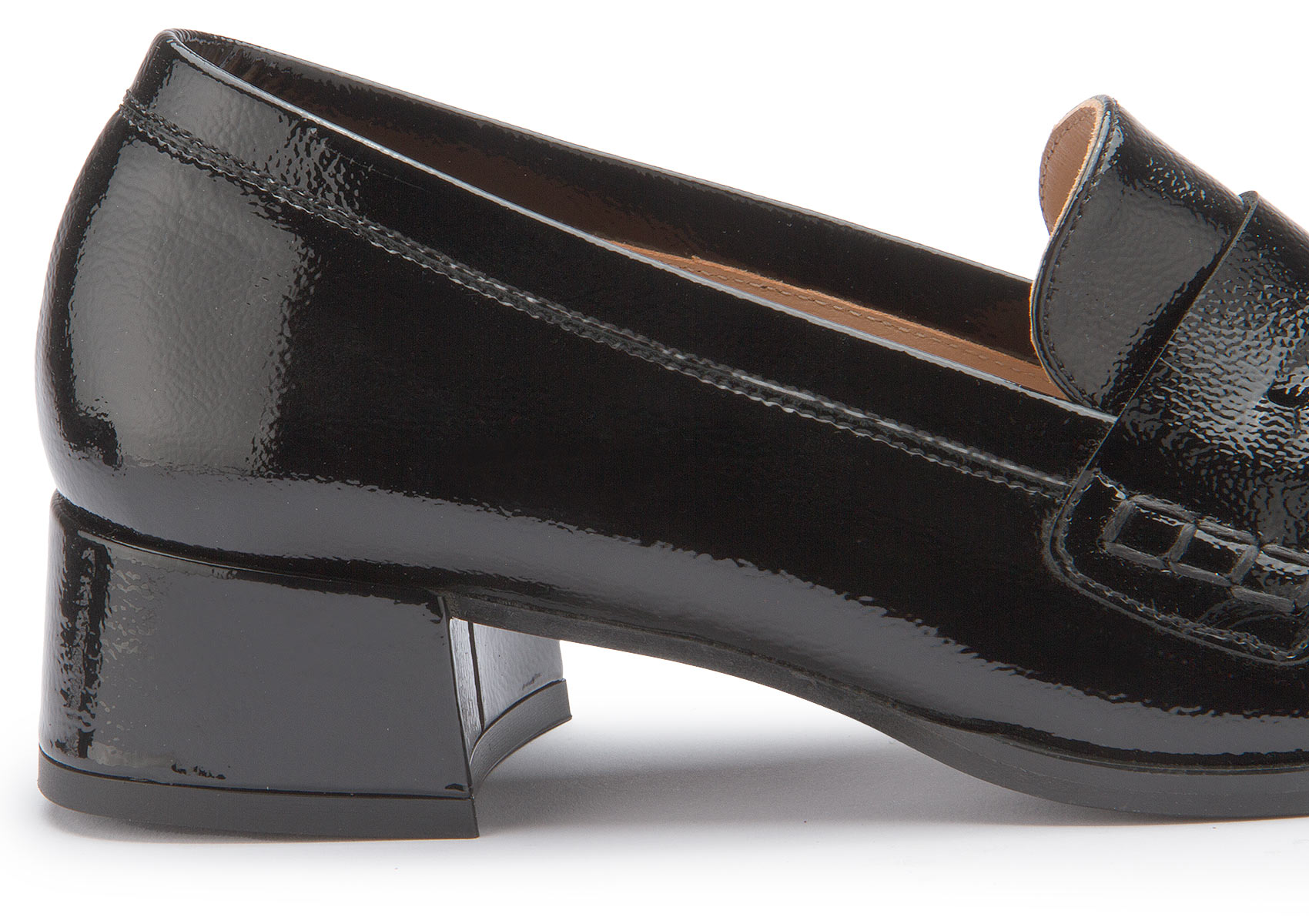 Der Bariello Trotteur in Schwarz: Zeitlose Eleganz und unschlagbarer Komfort. Mit glänzendem Lackleder außen und weichem Leder innen ist er ideal für formelle Anlässe und den Alltag. Stilvoll und vielseitig - ein Schuh, der Ihrem Look eine Extraportion Klasse verleiht. Eine zeitlose Ergänzung für Ihre Schuhsammlung, die Sie begeistern wird.