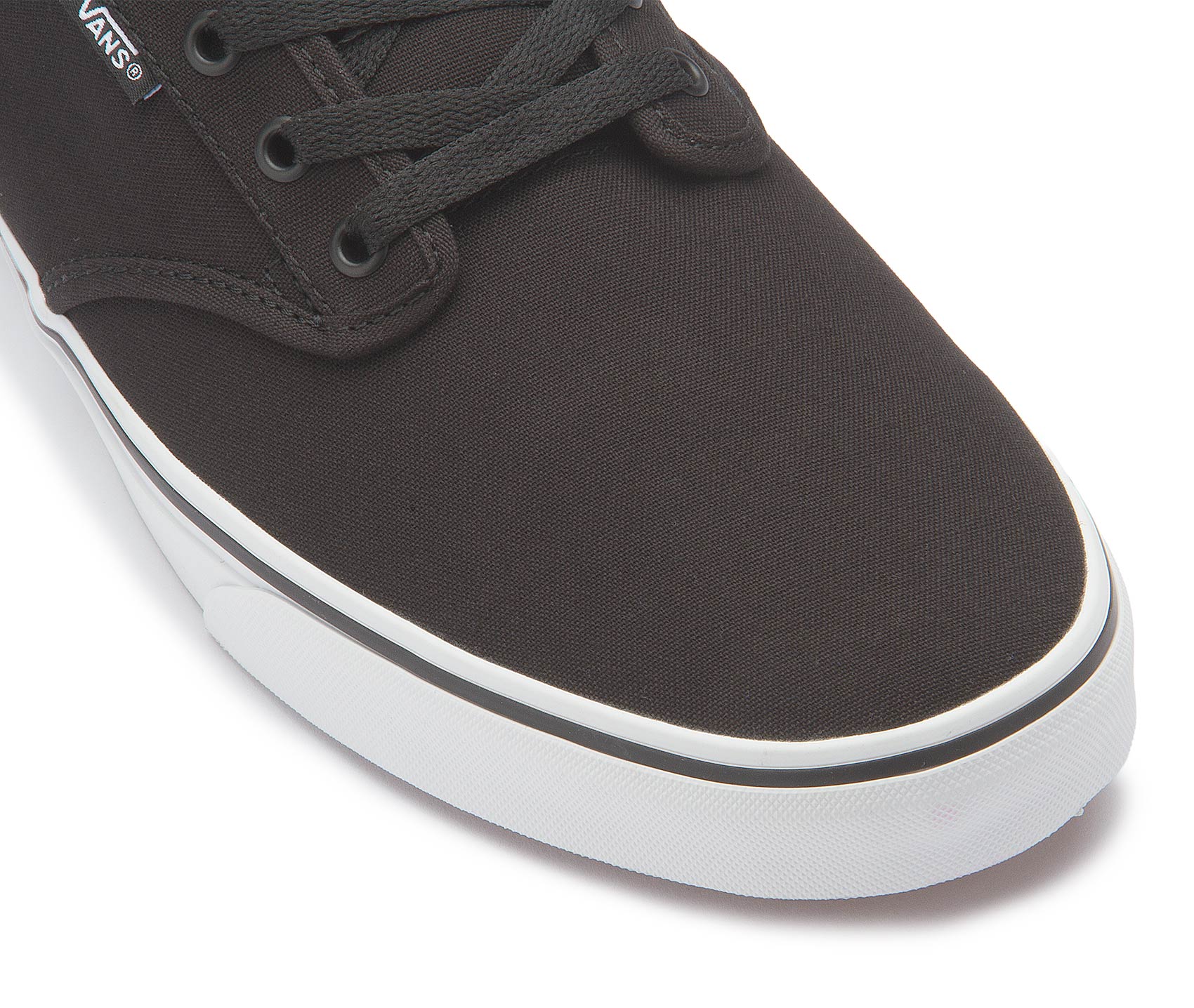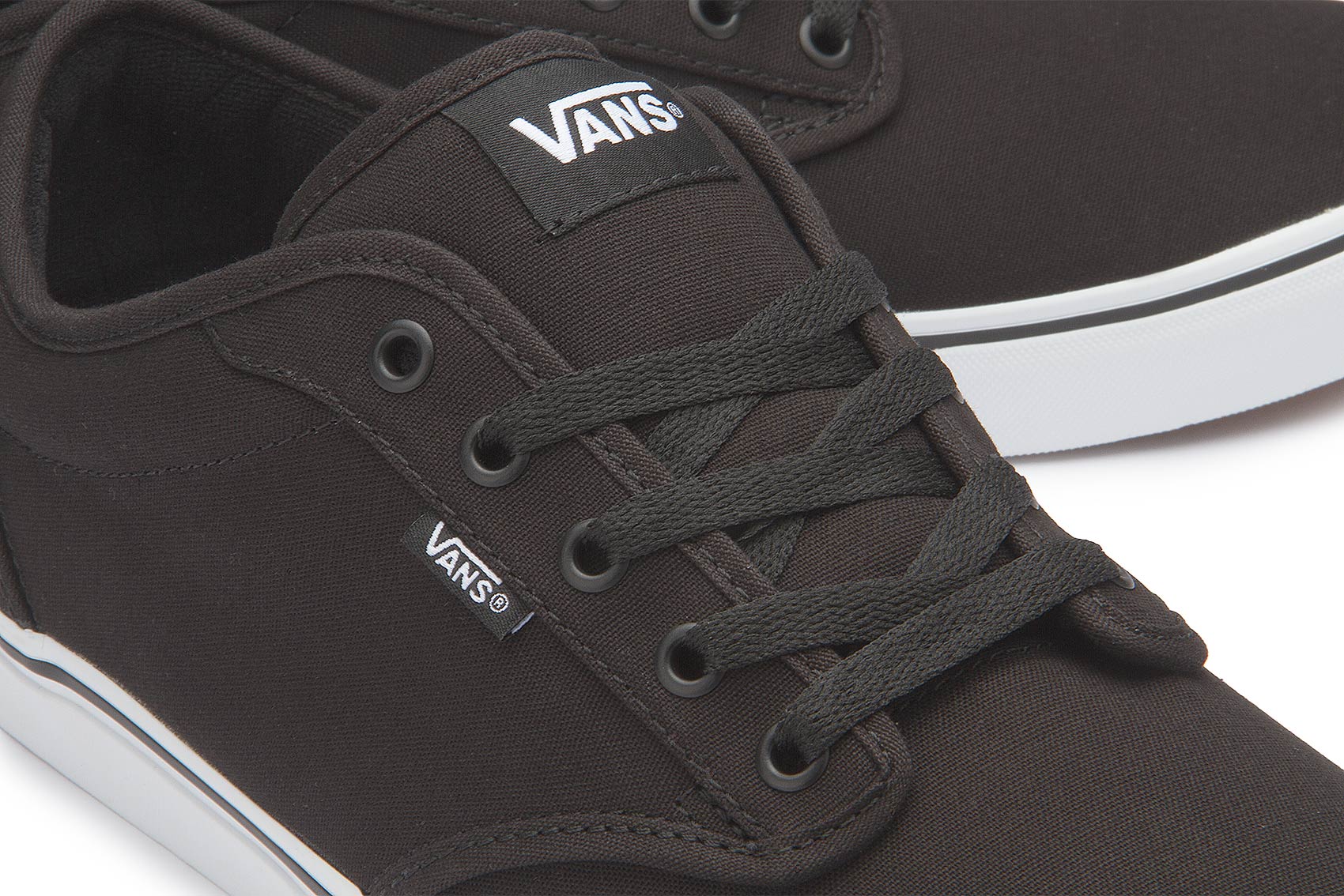 Der Klassiker von Vans unter den Sneakern für lässige Casual-Outfits. Hier aus schwarzem Canvas mit weißen Schnürsenkeln, Logo-Fahne an der Seite und der typischen Vans Sohle.