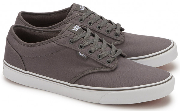 Der Klassiker von Vans unter den Sneakern für lässige Casual-Outfits. Hier aus grauem Canvas mit grauen Schnürsenkeln, Logo-Fahne an der Seite und der typischen Vans Sohle.