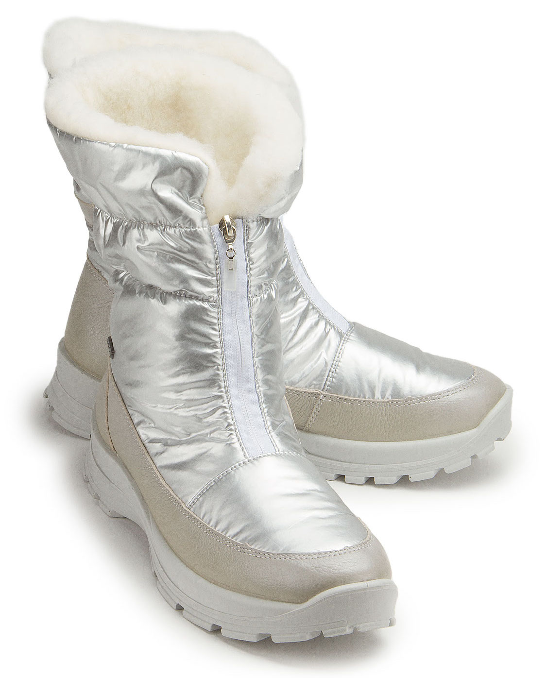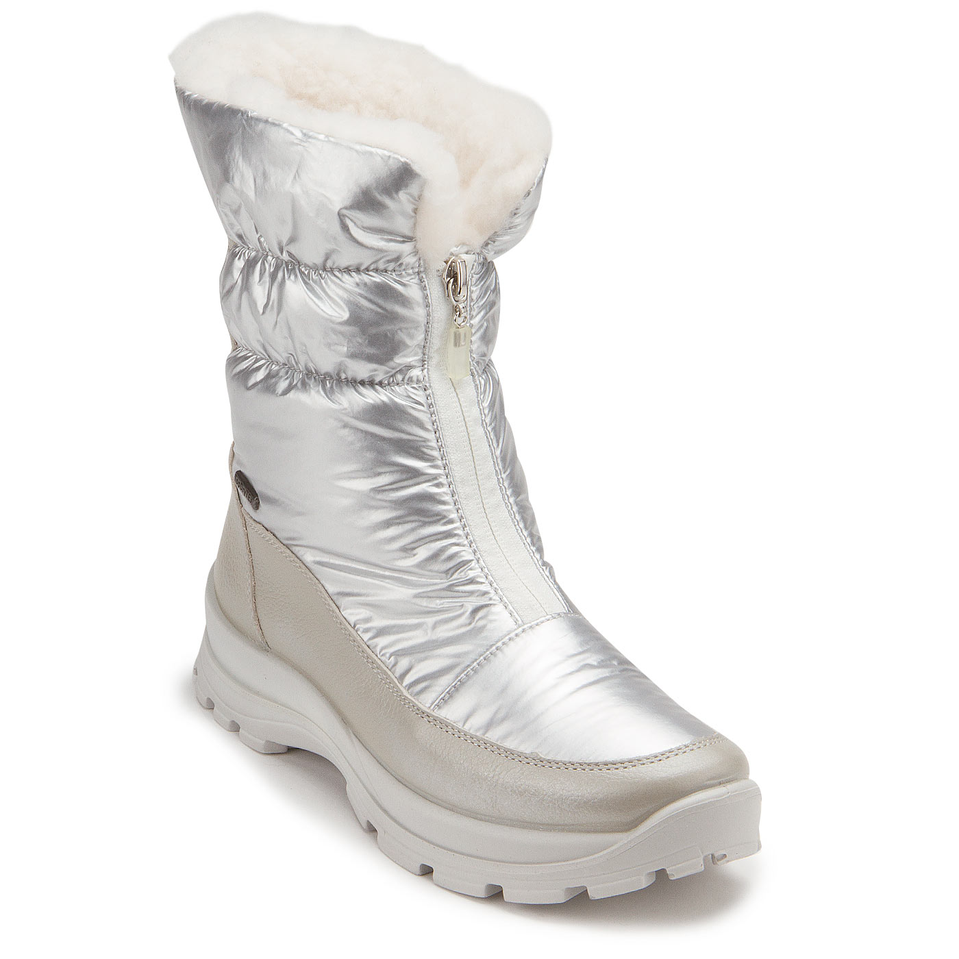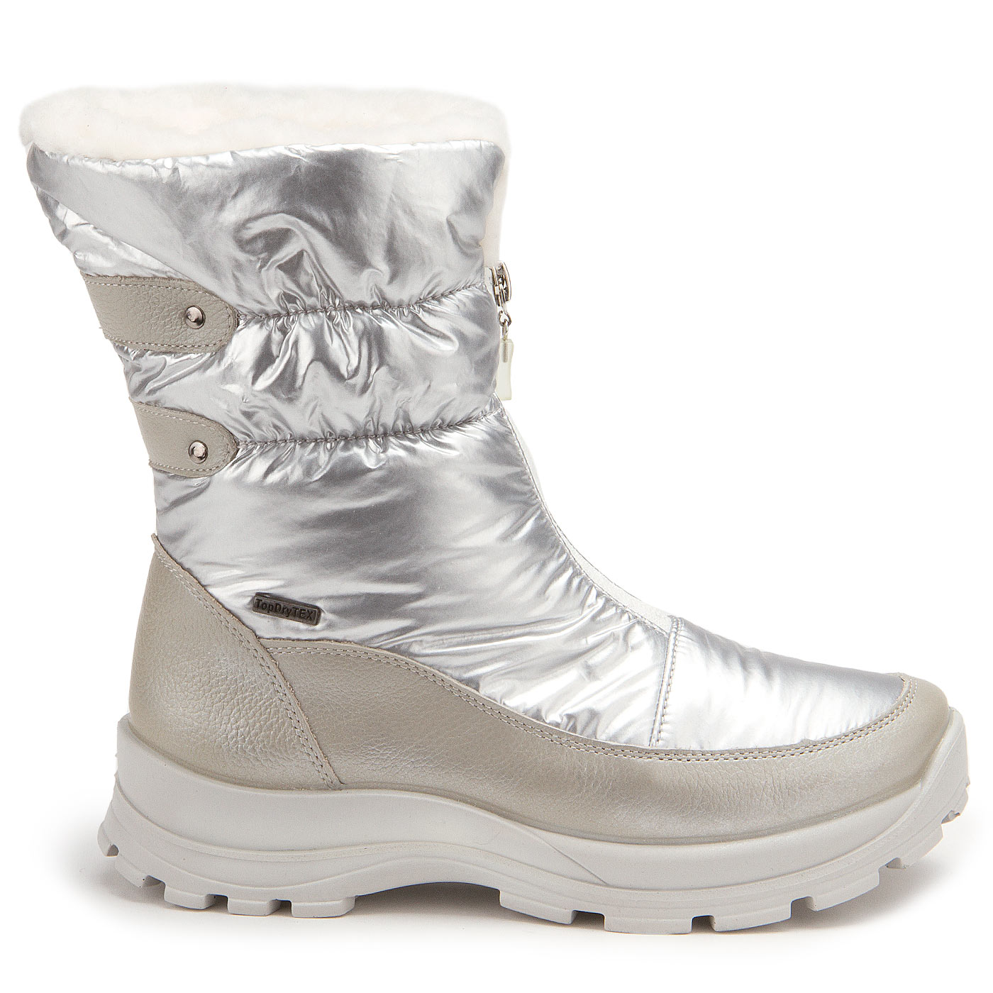 Im Herbst und Winter bist Du gut beraten mit diesem silbernen Stiefel. Das Modell erlaubt einen komfortablen Einstieg dank geschicktem Reißverschluss. Der Stiefel ist für den Herbst und Winter mit weichem Plüsch warm gefüttert. Die TopDryTex-Technologie macht den Schuh atmungsaktiv. Die herausnehmbare Sohle kannst Du einfach wechseln und so Deine ganz eigenen Einlagen verwenden. Die Sohle dieses Schuhs wird direkt an den Schaft angespritzt, was Flexibilität und perfekte Dämpfung garantiert. Wenn Dir die Schuhweite F zu schmal und die Weite H zu breit sind, ist dieser Schuh für Dich perfekt.