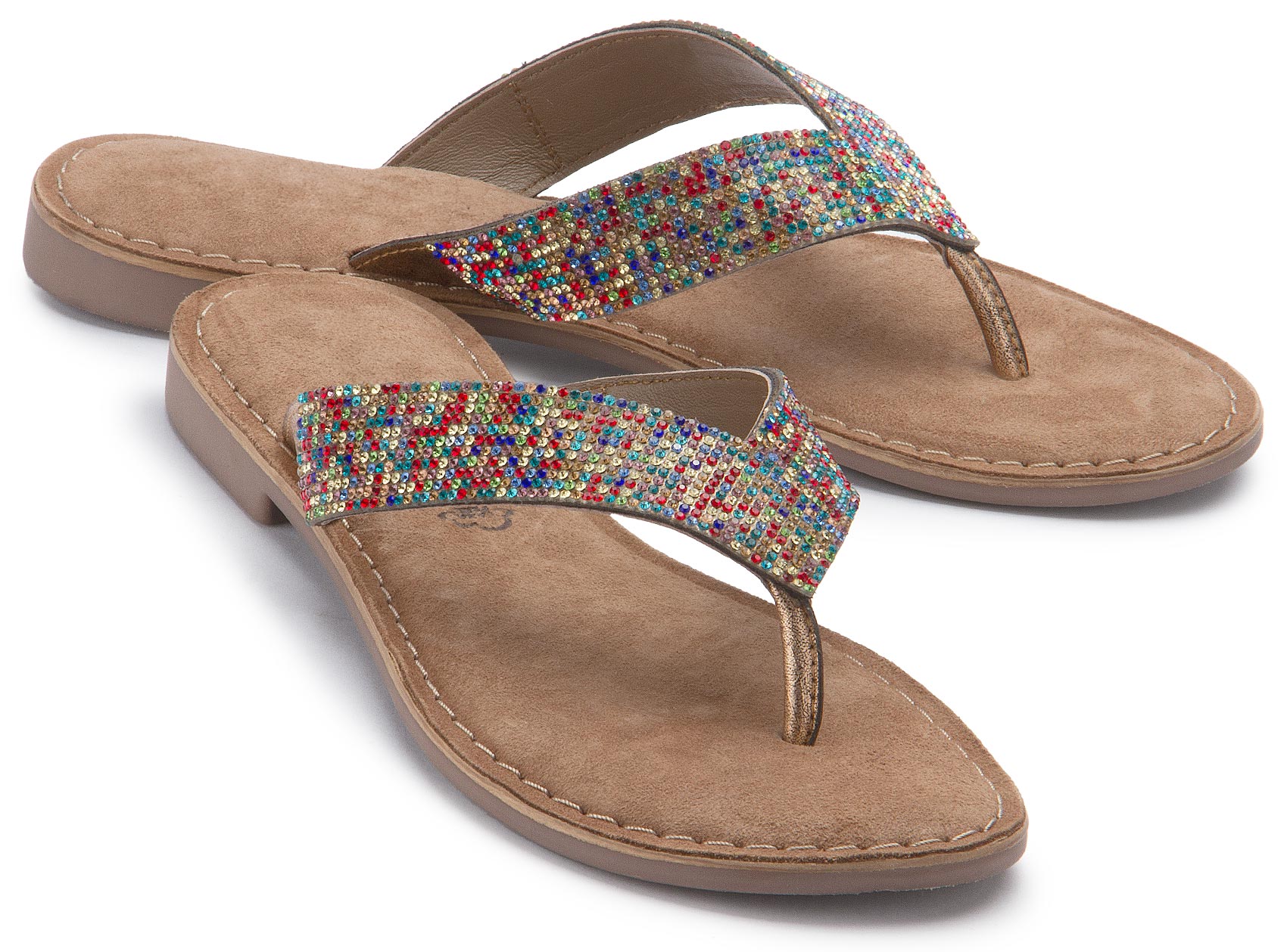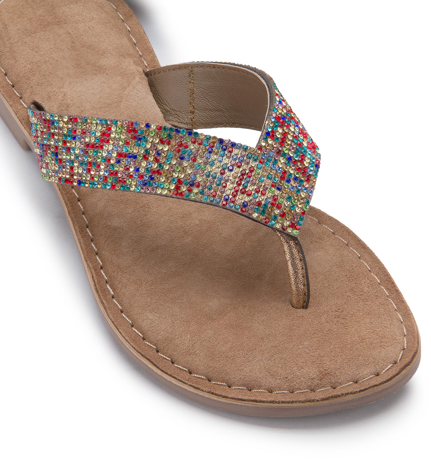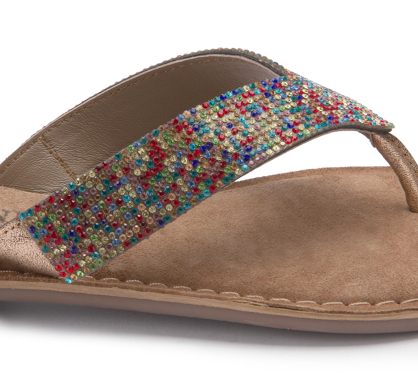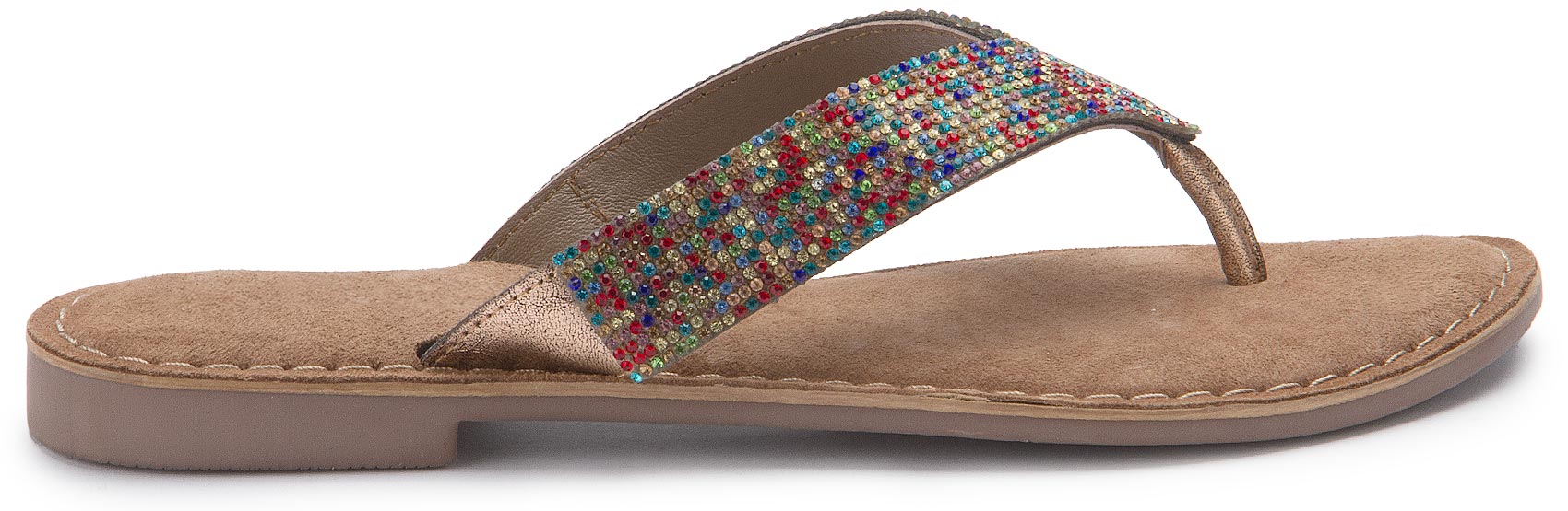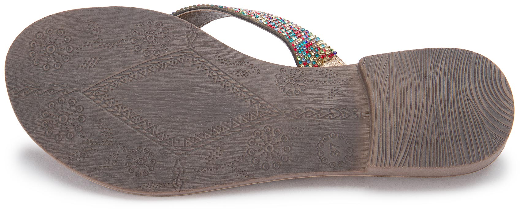 Mit diesem Zehentrenner wird der Sommer einfach cool! Das Design mit den schimmernden Strassteinchen harmoniert perfekt mit luftigen Sommerkleidern als auch zu lässigen Jeans oder hippen Strandlooks toll kombinieren.
