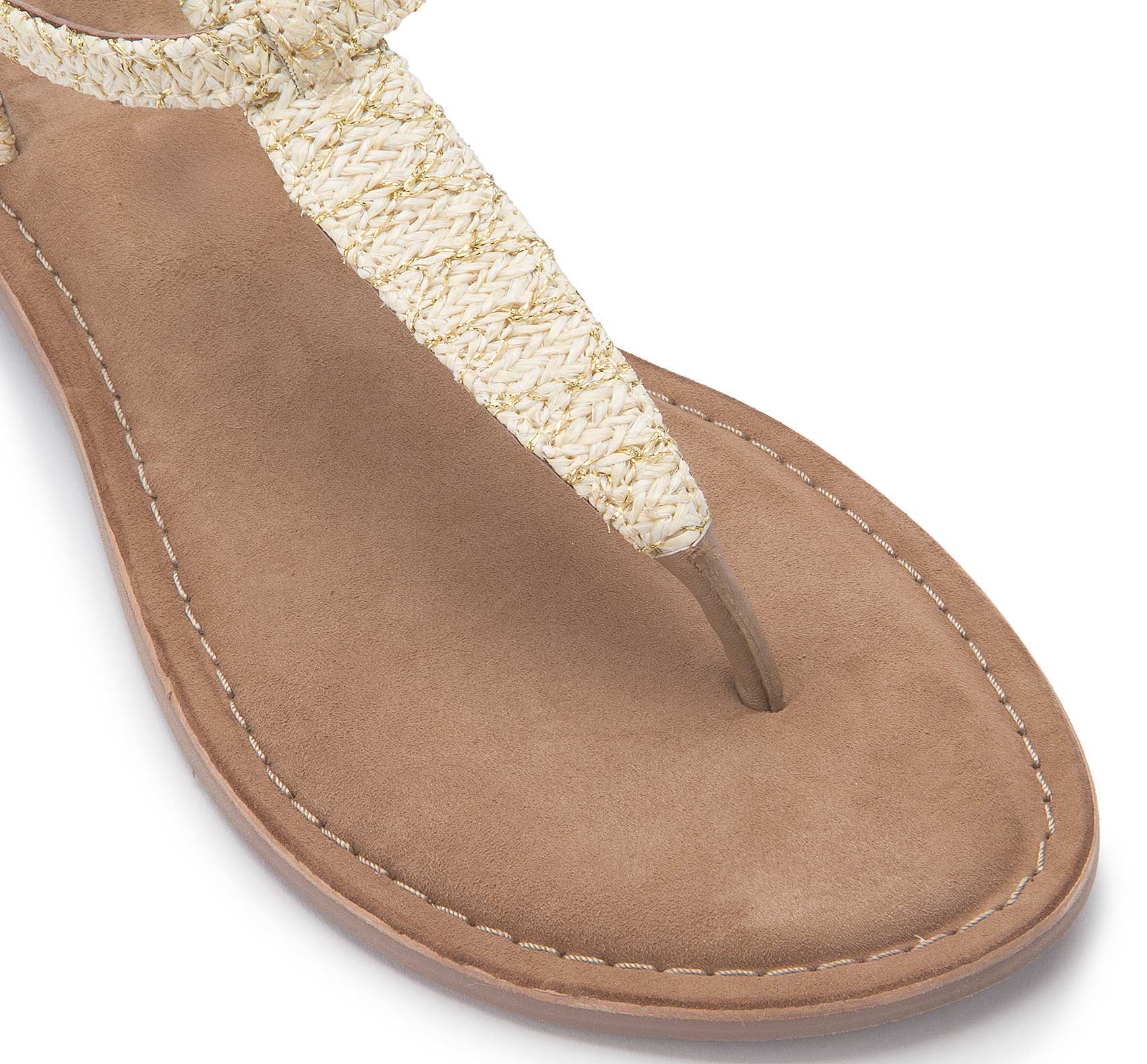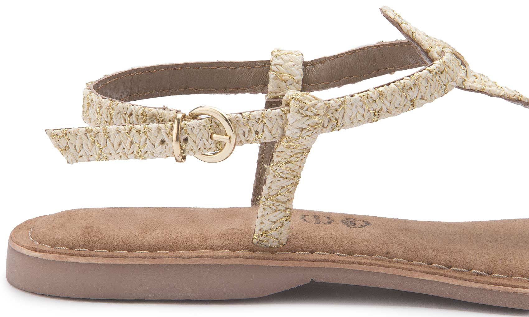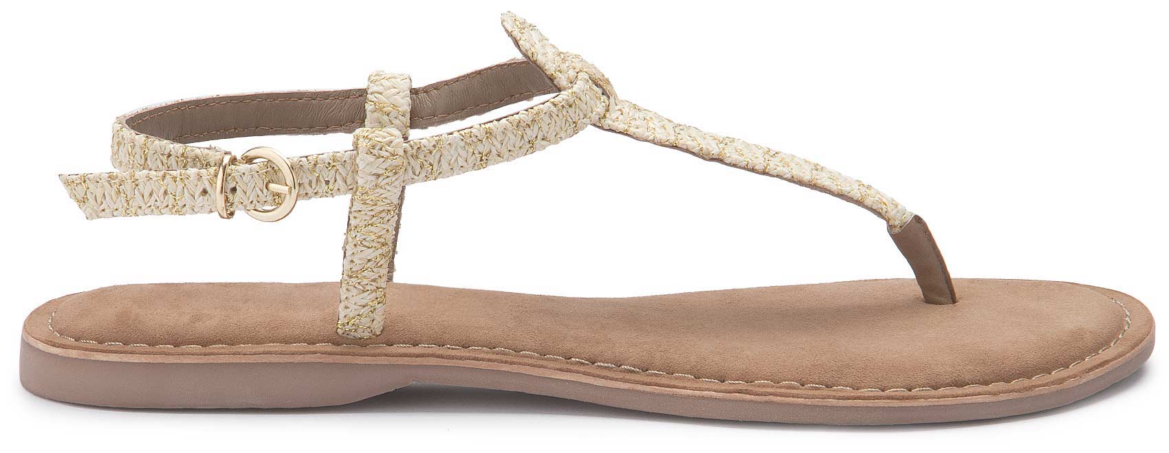 Diese Zehentrenner überzeugen mit ihrem angenehmen Tragegefühl dank weichem Material und individuell verstellbarem Schnallenverschluss. Die Bast-Details verleihen dem Schuh eine natürliche, sommerliche Note und machen ihn zum idealen Begleiter für warme Tage. Ein vielseitiges Modell, das sich im Handumdrehen kombinieren lässt – perfekt für entspannte Looks mit Stil!
