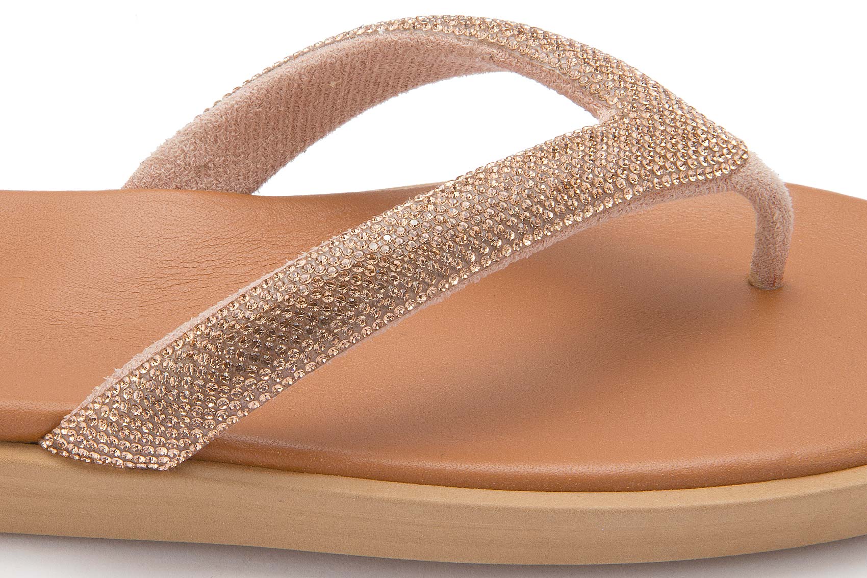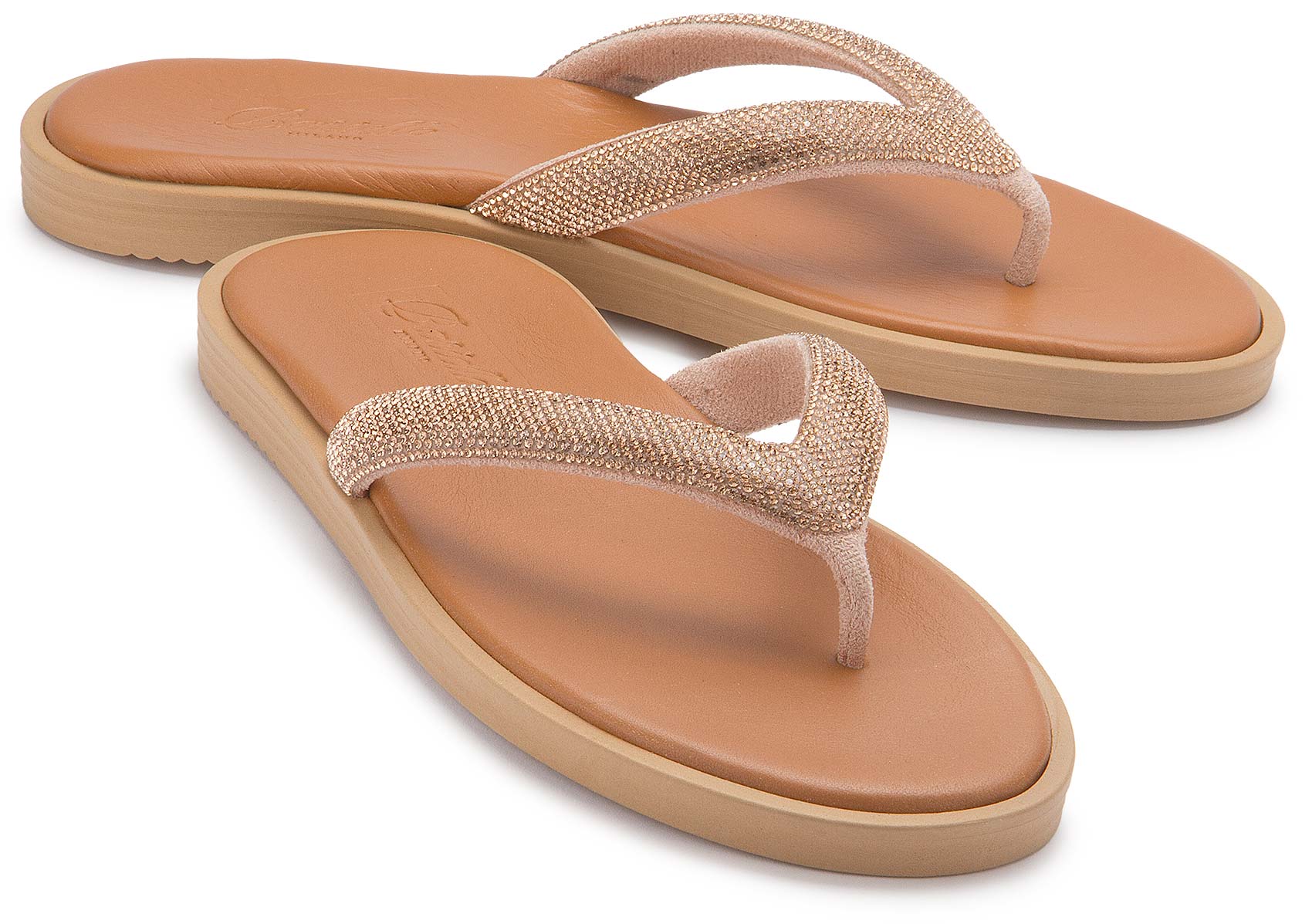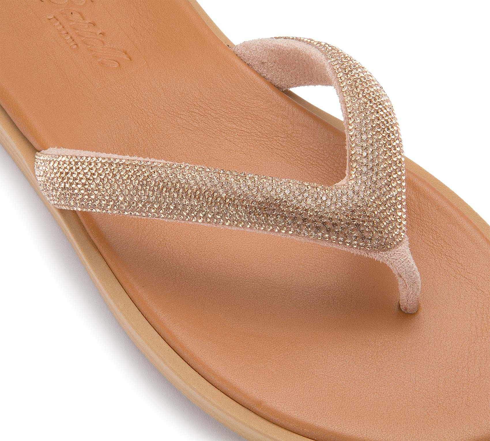 Sie suchen einen Schuh, der Sie zum Strahlen bringt? Dieser Zehentrenner erfreut mit seinen Riemen aus hochwertigem Leder, verziert mit funkelnden Steinen. Die Mischung aus Glamour und einem simplen Design macht die Zehentrenner zum trendigen Allrounder für jeden Anlass und jedes Outfit, dem eine elegante Note fehlt.